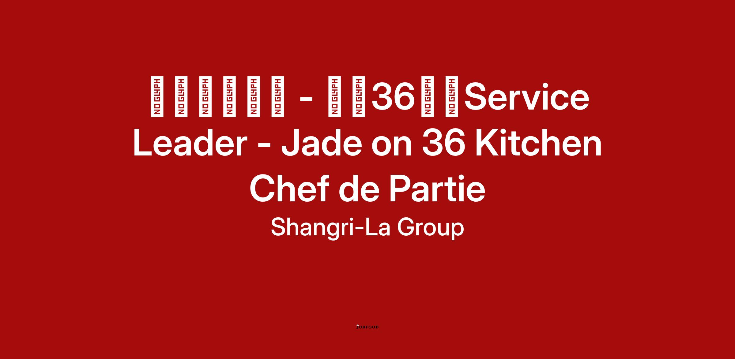 We are currently looking for a Service Leader - Jade on 36 Kitchen Chef de Partie to join our Kitchen team.