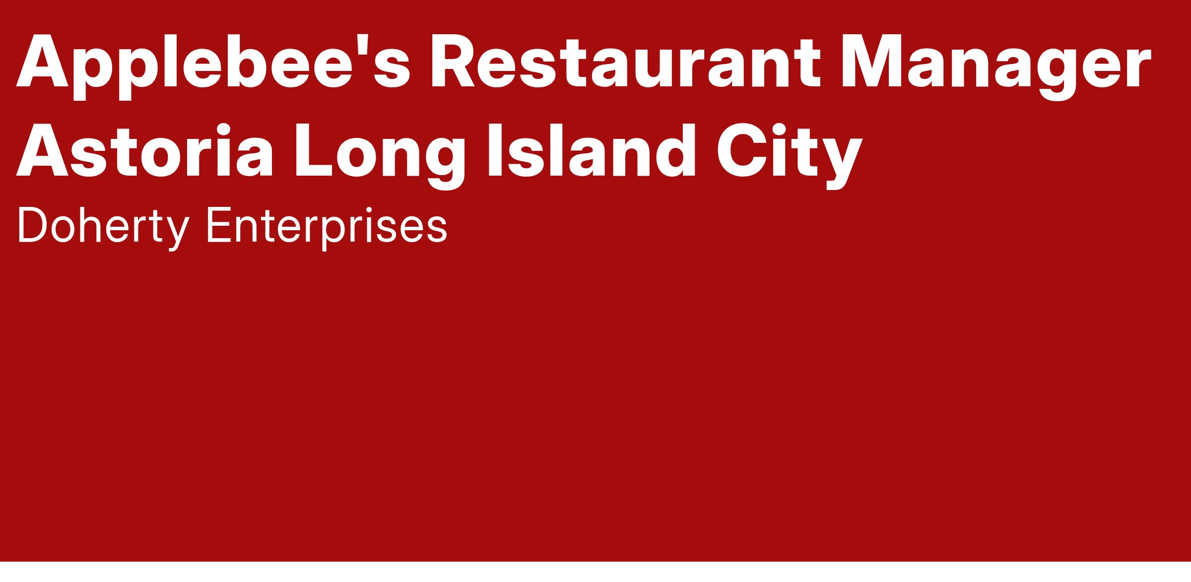Applebee's Restaurant Manager Astoria Long Island City