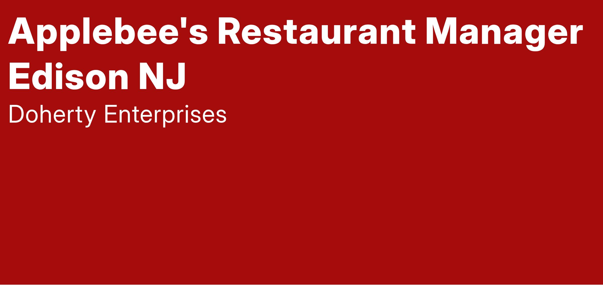 Applebee's Restaurant Manager Edison NJ