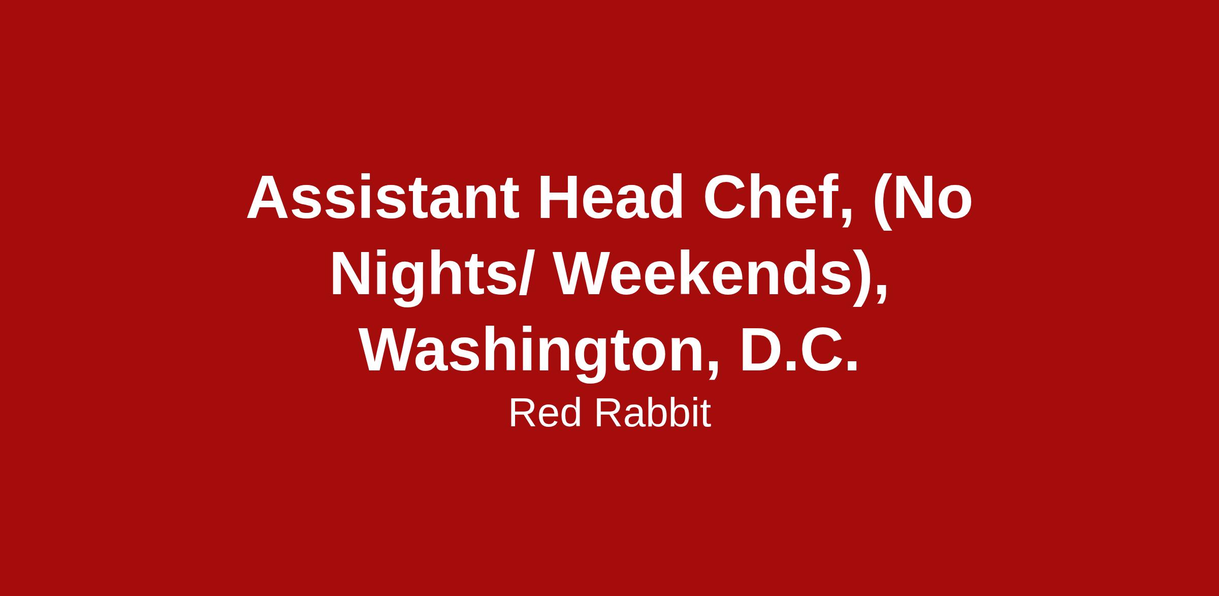 Red Rabbit is an Equal Opportunity Employer. All qualified applicants will receive consideration for employment without regard to age, race, creed, color, national origin, ancestry, marital status, or sexual orientation.