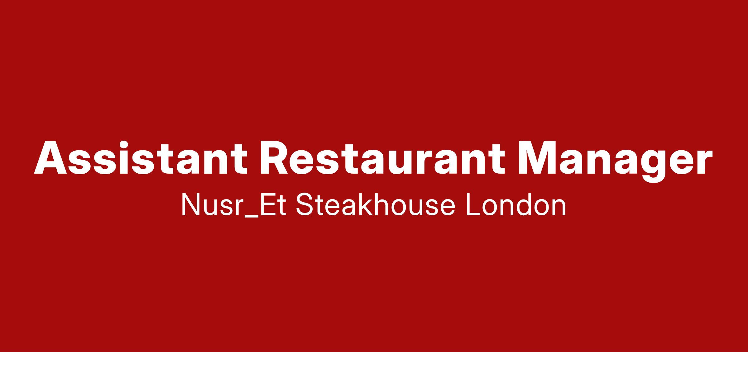 We have an exciting opportunity for a motivated Assistant Restaurant Manager to join our passionate team at the prestigious Nusr-Et Steakhouse in London.