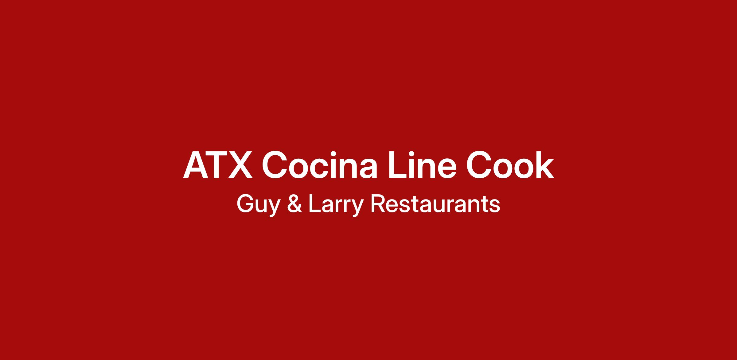 We are looking for friendly, energetic and enthusiastic team players to join the ATX Cocina family. Learn more about us at www.atxcocina.com. Our focus is on the total satisfaction of every guest. We interact with one another in a courteous, friendly and professional manner.