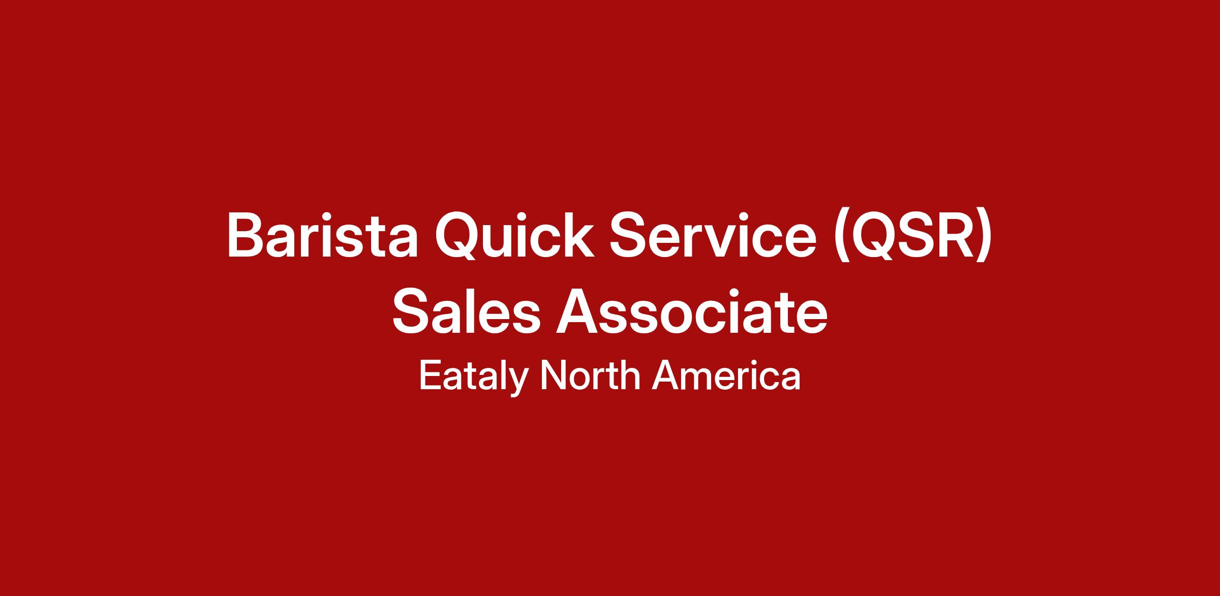 A Quick Service Restaurant (QSR) Sales Associate provides exceptional guest service across Eataly’s various QSR counters – serving gelato, pastries, coffee, paninis and other Italian treats. Reports to the QSR General Manager and the QSR Assistant General Managers.