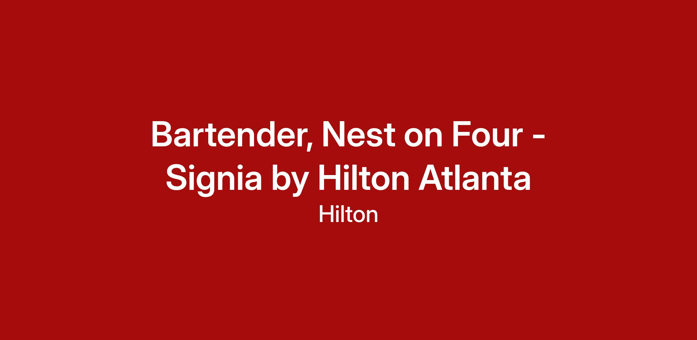 The Signia by Hilton Atlanta is looking for a bartender to join the Food & Beverage team at Nest on Four! This 976-room milestone property offers guests an elevated experience that redefines Southern Hospitality.