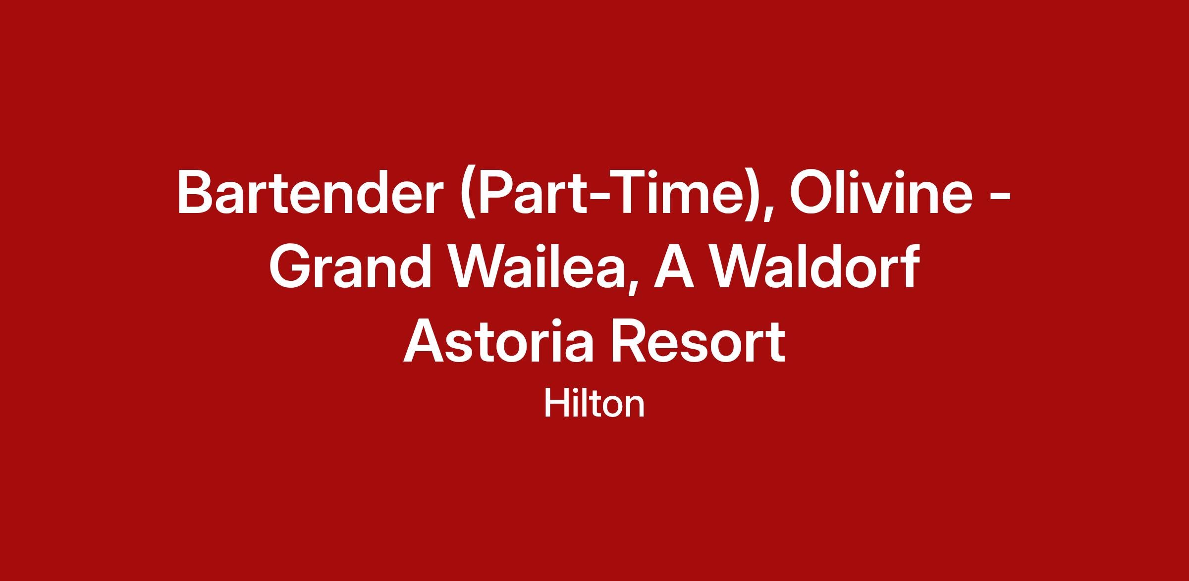 The gorgeous Waldorf Astoria Resort in Maui, Grand Wailea, is looking for a Bartender to join the Food and Beverage team!