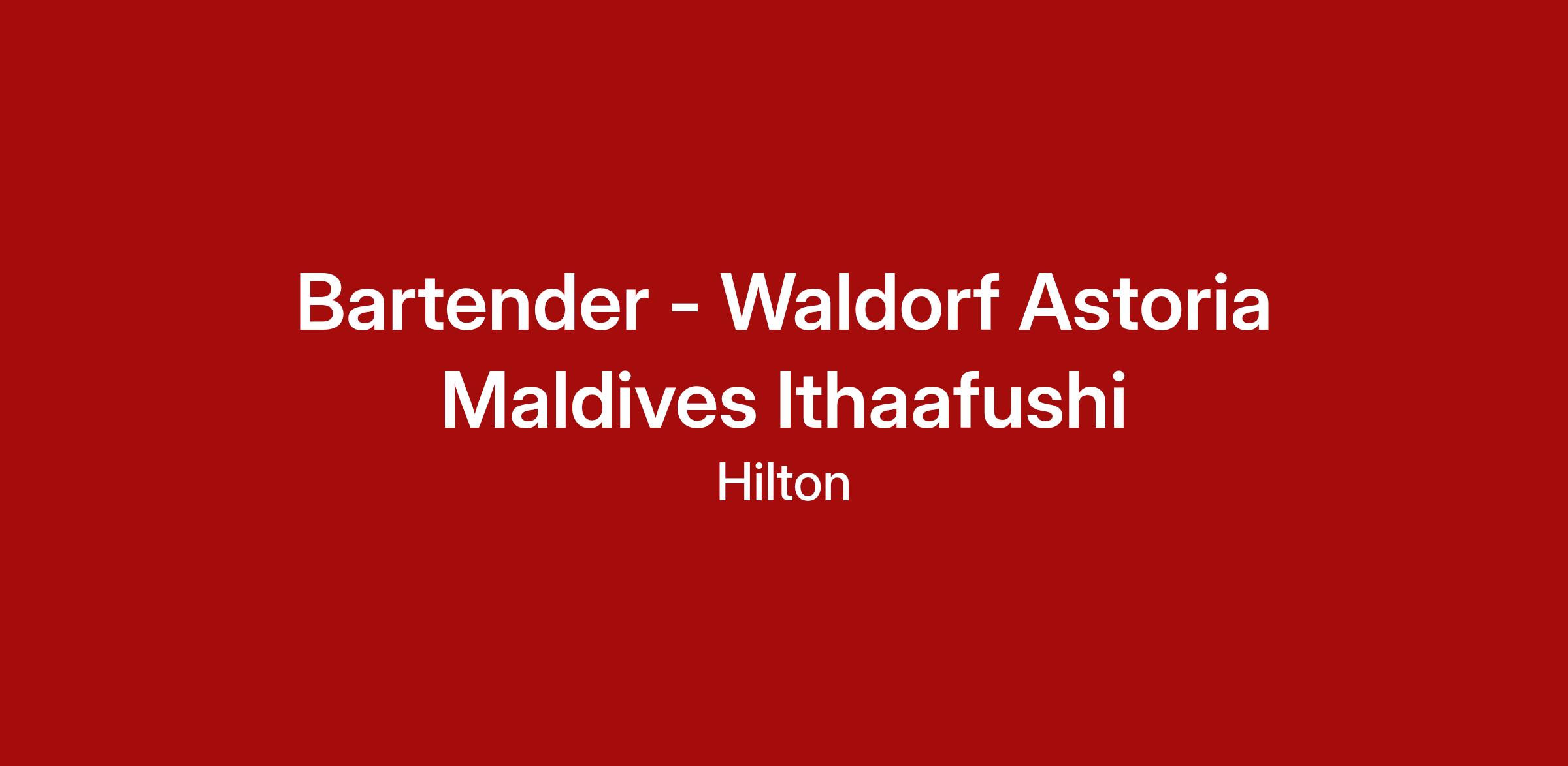As a Bartender serving Waldorf Astoria Maldives Ithaafushi is responsible for the efficient and professional service of food and beverages, while ensuring guests receive optimum service in accordance with the standards, policies and procedures of the hotel and Hilton. As the Bartender serving Waldorf Astoria Maldives, you will be responsible for performing the following tasks to the highest standards\: