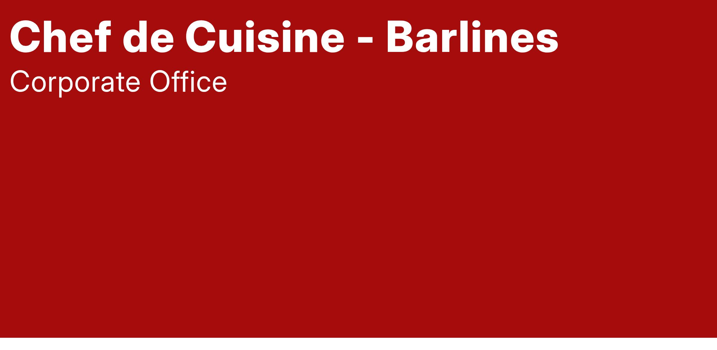 Responsible for directing, coordinating, training, and supervising the Barlines culinary team. To provide technical and administrative assistance to ensure efficient, effective operation of the kitchen and food production outlets.