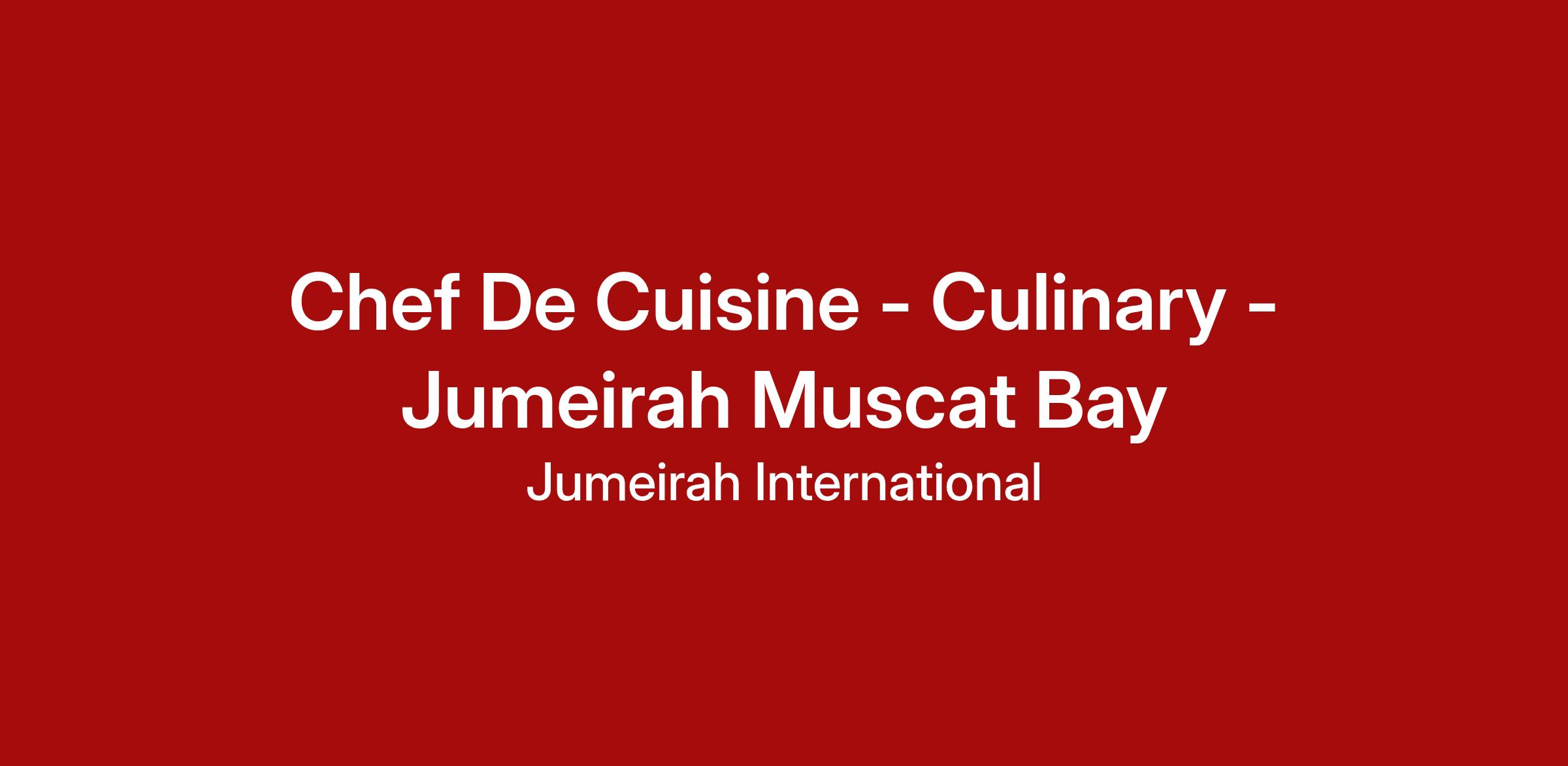 An opportunity has arisen for a Chef De Cuisine to join Culinary in Jumeirah Muscat Bay. The main duties and responsibilities of this role:
