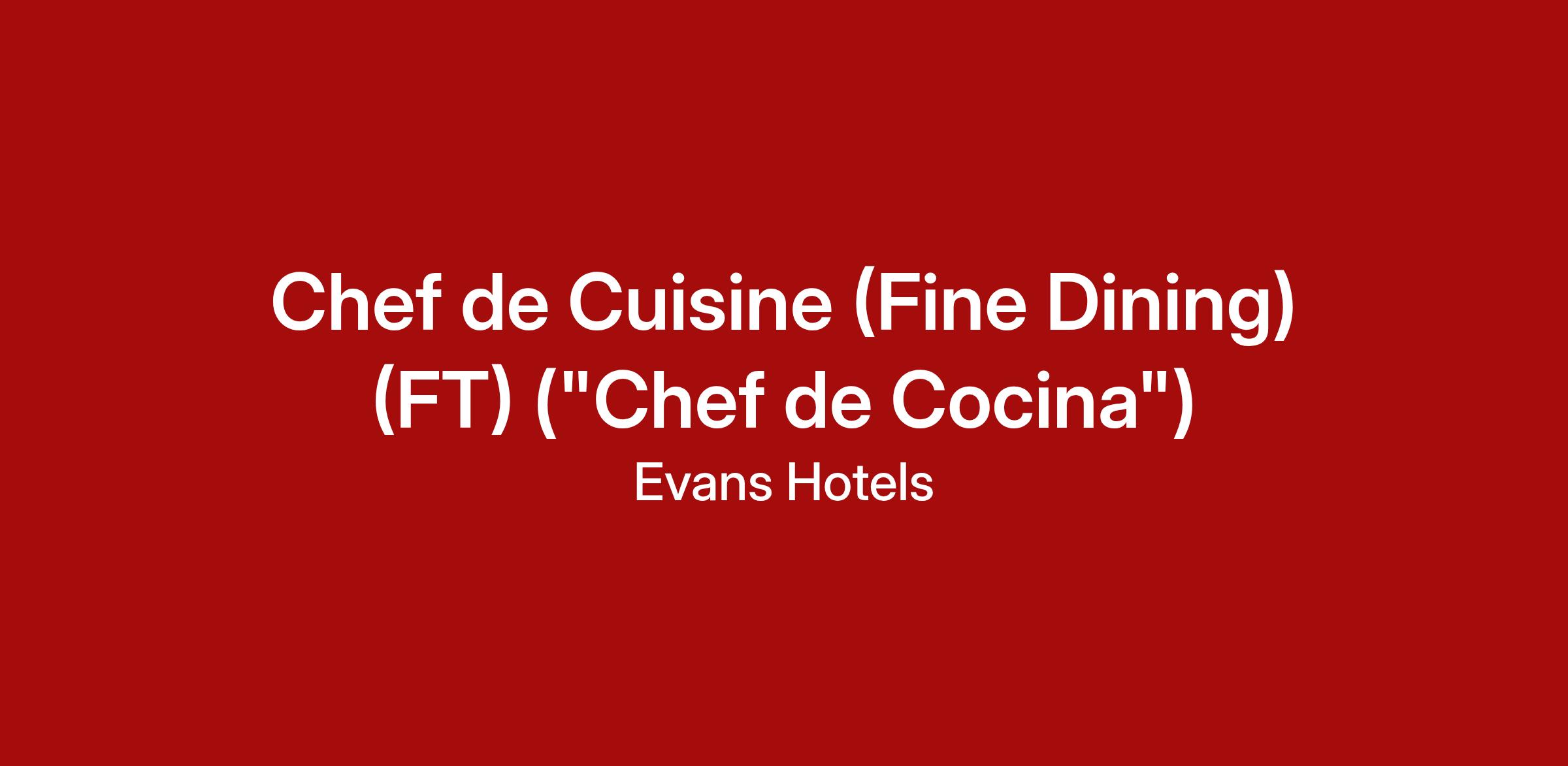 - At least 5–7 years of progressive culinary leadership experience as a Chef de Cuisine, Executive Sous Chef, or equivalent senior role.