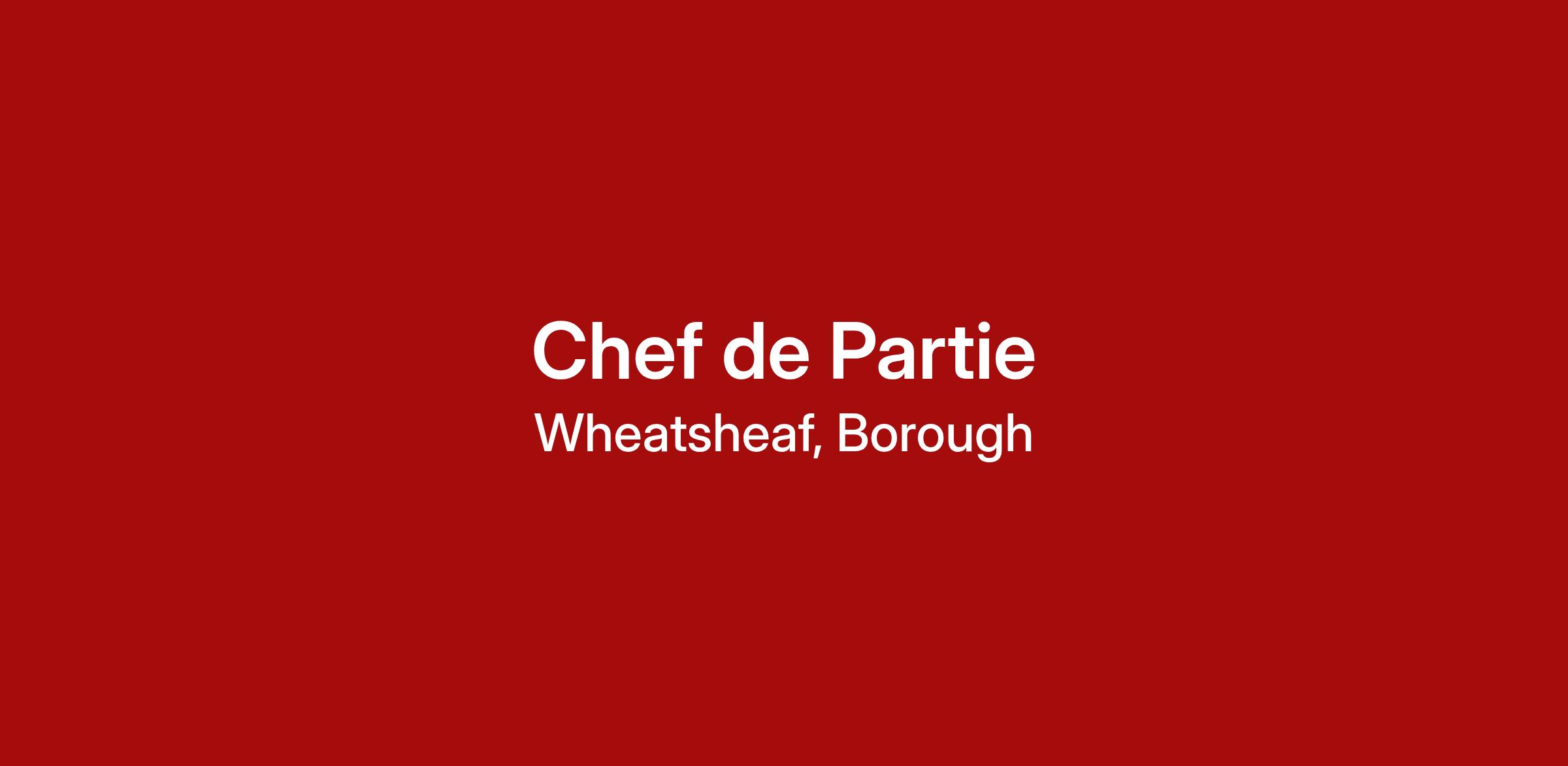 - Be an active hands-on Chef de Partie / Kitchen