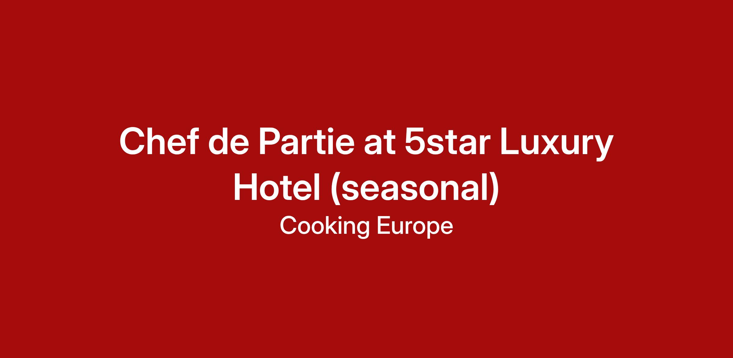 Chef de Partie at 5star Luxury Hotel (seasonal)