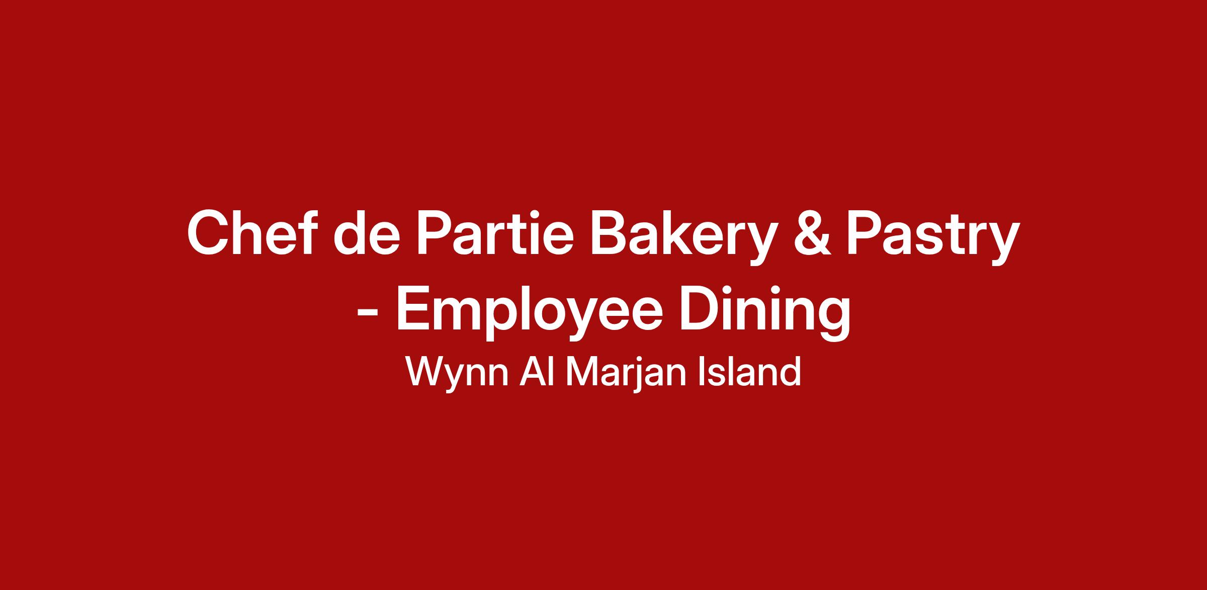 Wynn Al Marjan Island is currently seeking a Chef de Partie Bakery & Pastry to join the resort’s Employee Dining team.