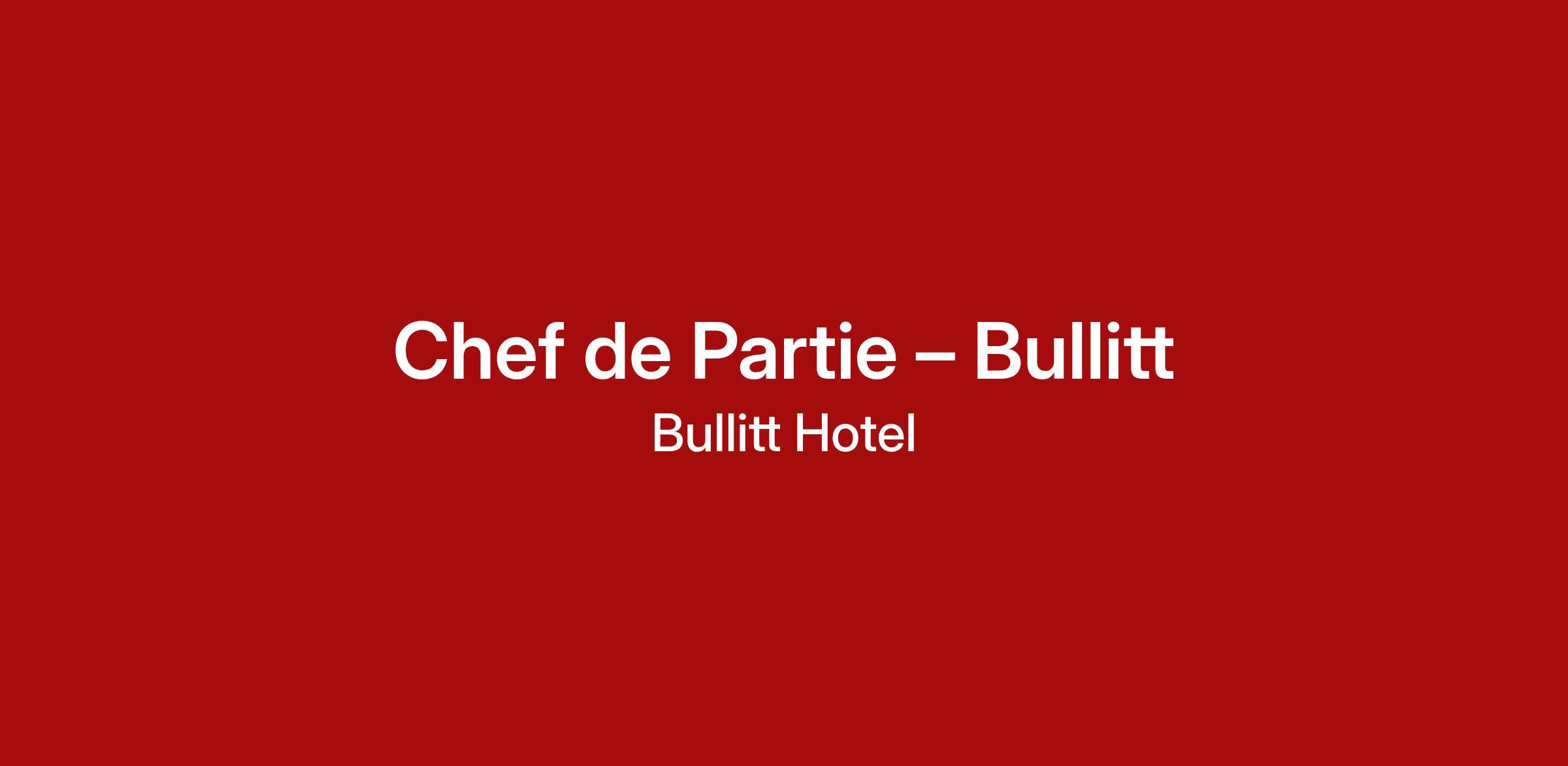 We are now seeking a Chef de Partie to join our team at Bullitt Hotel.