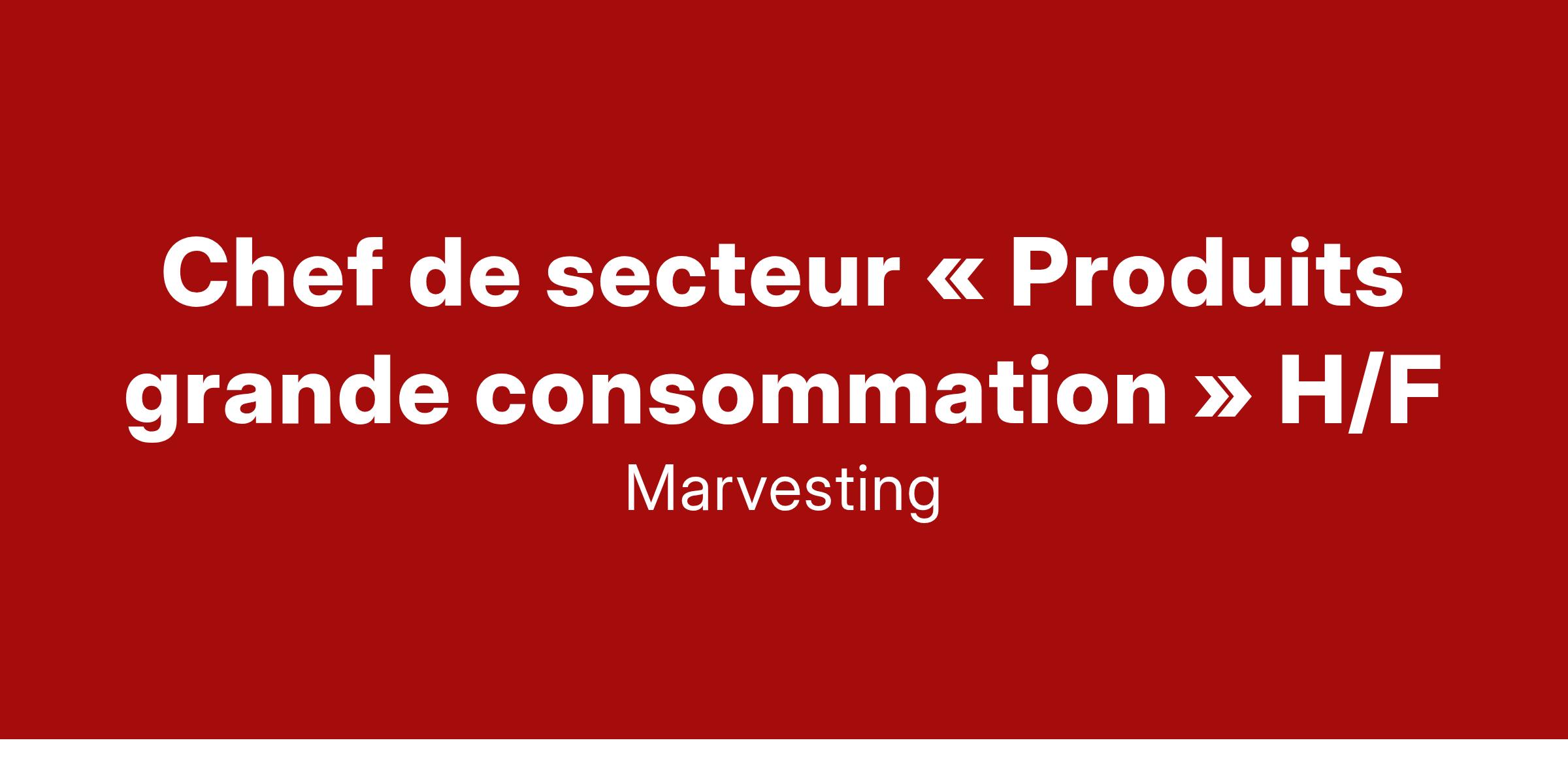 Marvesting recrute un Chef de secteur (H/F) pour représenter un de ses clients dans l’univers des « Produits grande consommation » sur le réseau HM/SM.