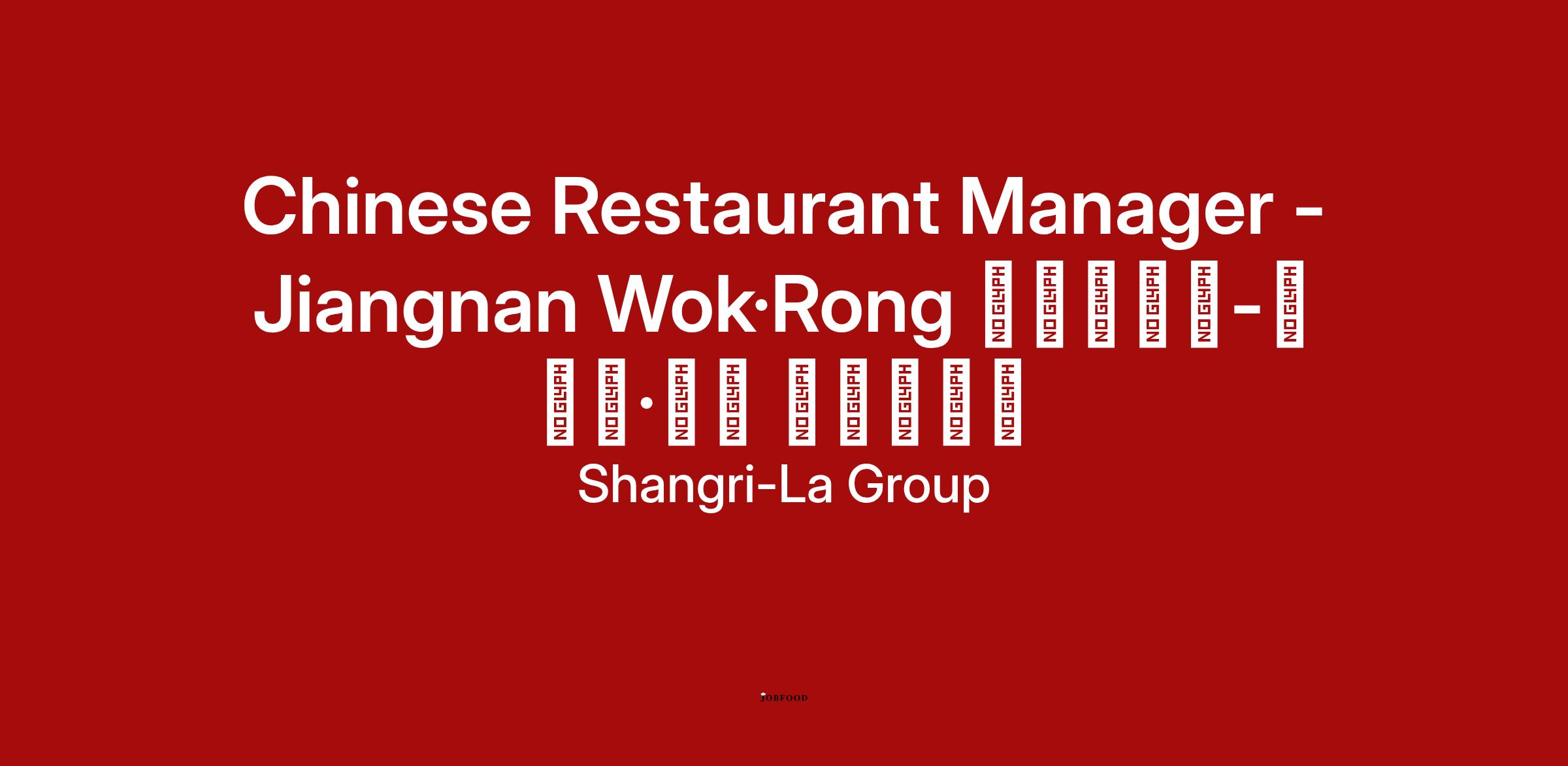 We are looking for a Chinese Restaurant Manager - Jiangnan Wok · Rong