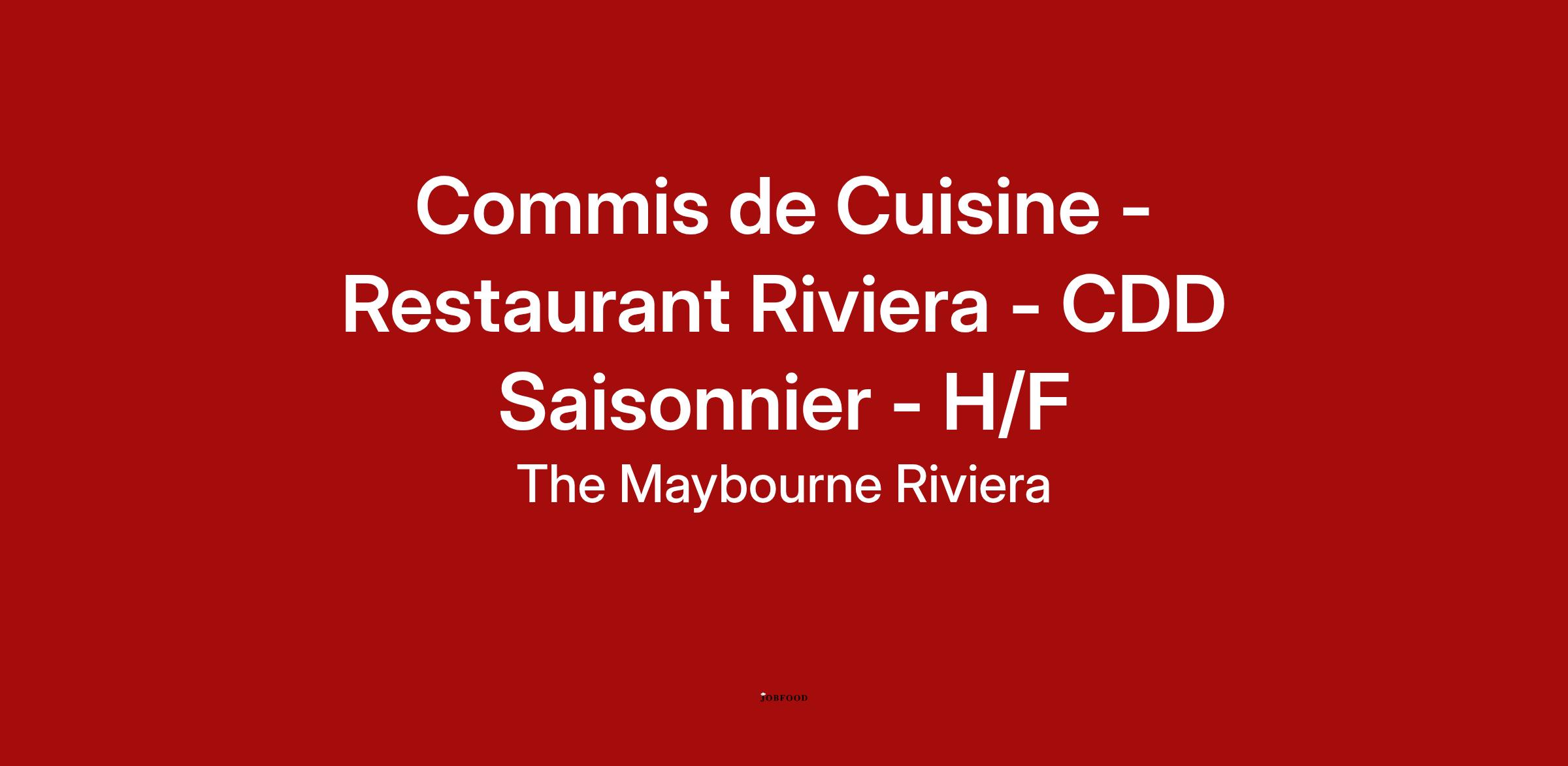 Nous recrutons un.e Commis de Cuisine au sein de notre incontournable Restaurant Riviera qui sera en charge de :
