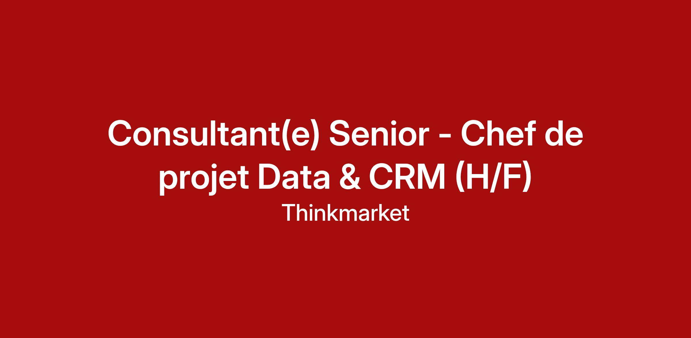 En tant que Consultant(e) Senior, vous intervenez comme chef(fe) de projet et référent(e) métier sur les sujets Customer Data, CDP, CRM et CX.