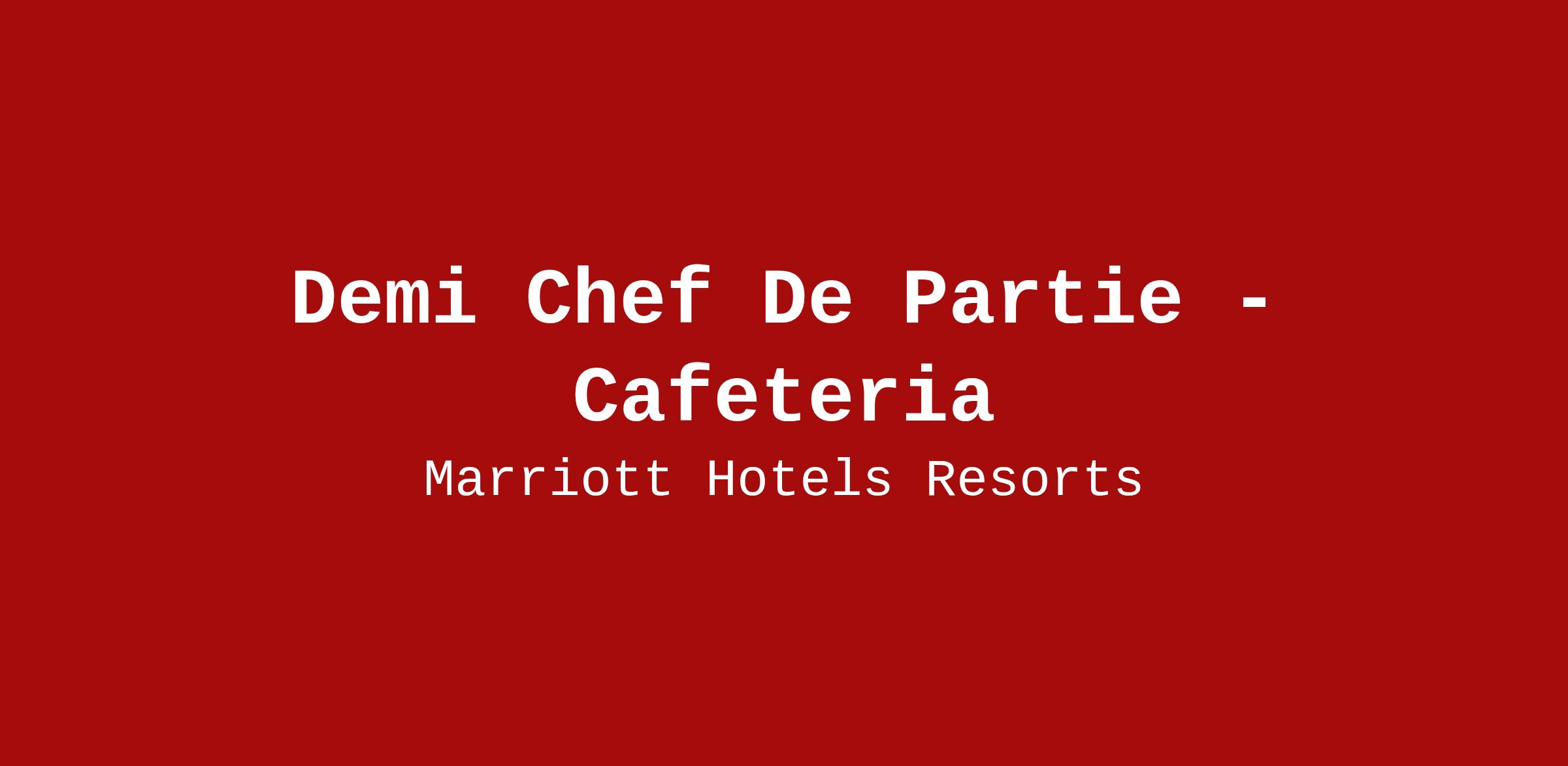 Demi Chef De Partie - Cafeteria