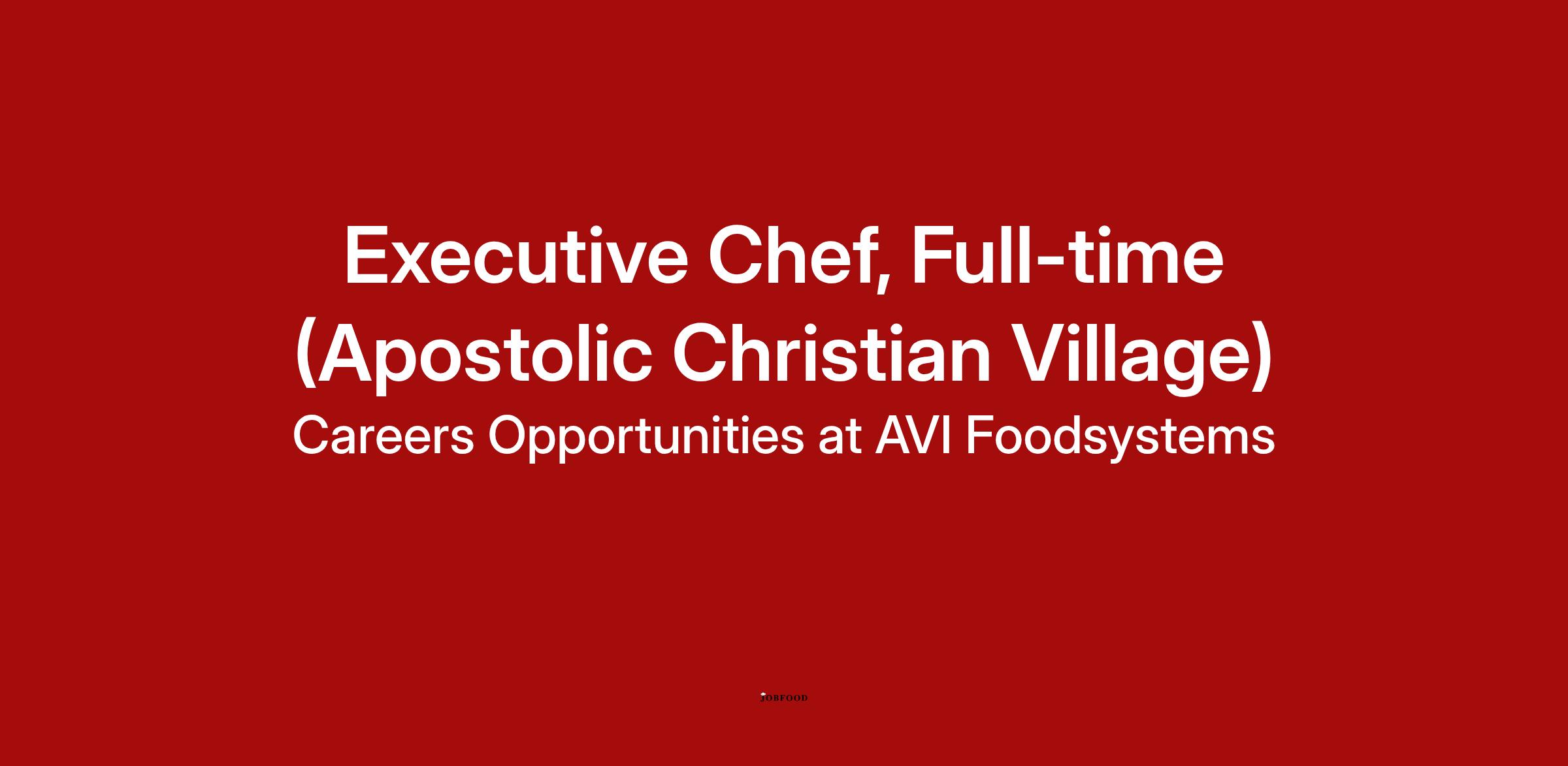 AVI Foodsystems is looking for an energetic and optimistic leader to fill the role of Executive Chef, Full-time at Apostolic Christian Village in Rittman, OH.