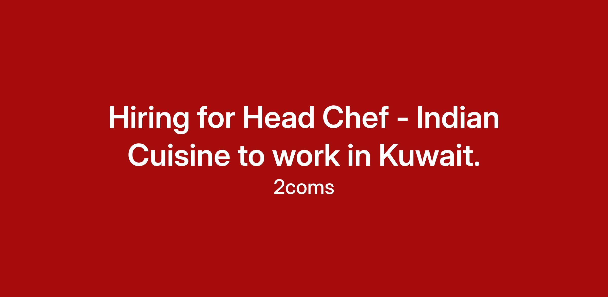 Excellent Job Opportunity for a Head Chef - Indian Cuisine to work in Kuwait! <\/span><\/b><\/span><\/span><\/span><\/span>