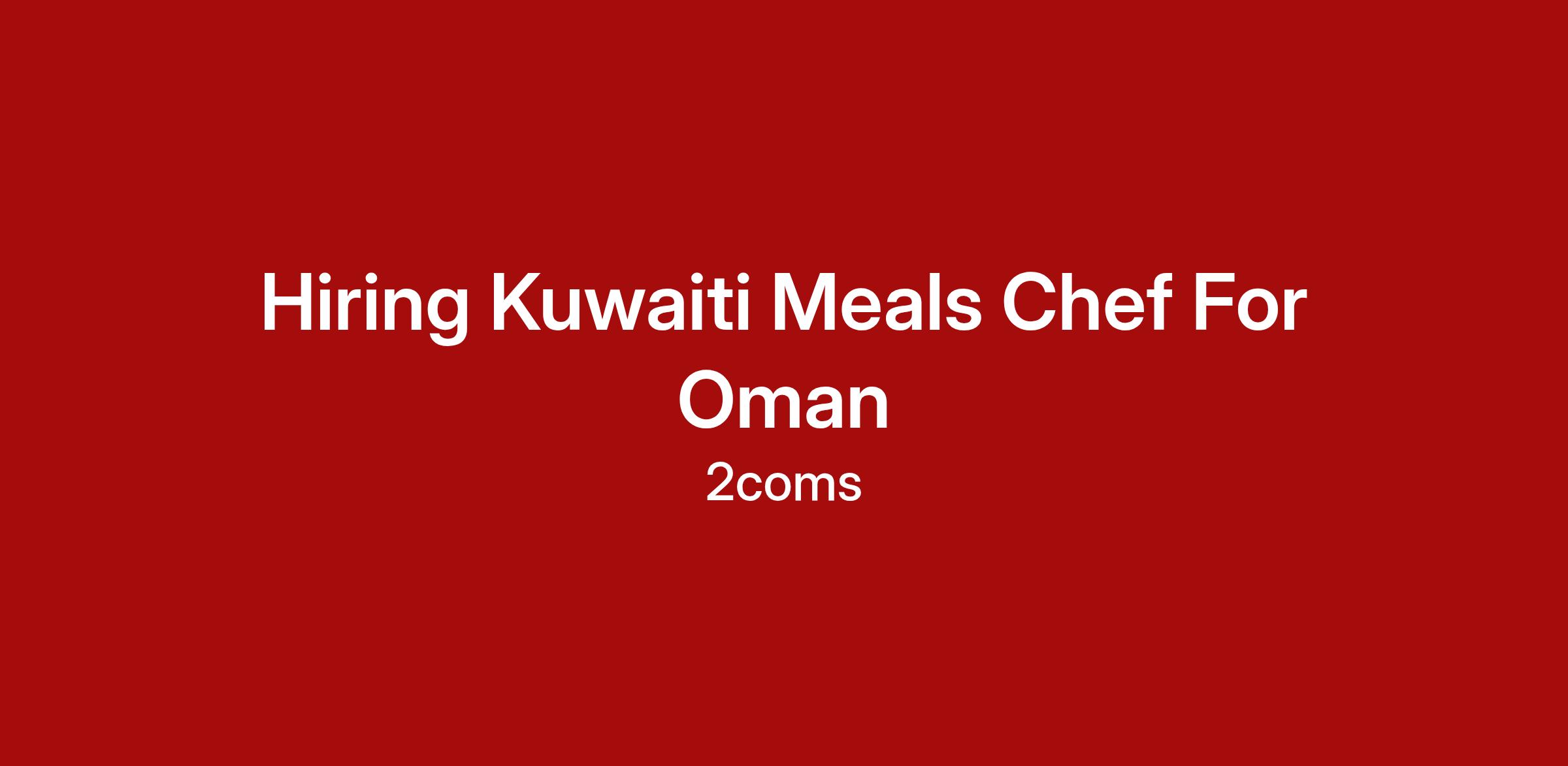 Hiring Kuwaiti Meals Chef For Oman