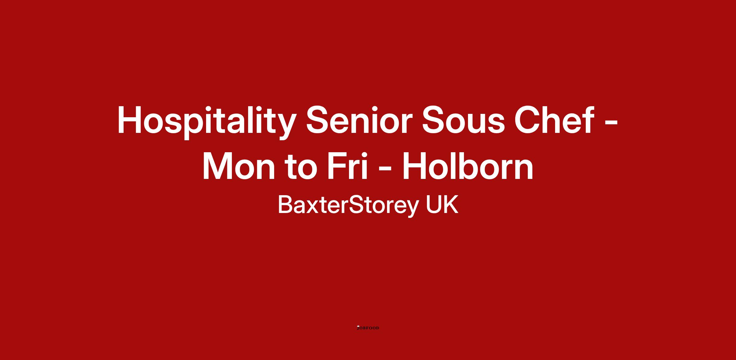 Title: Hospitality Senior Sous Chef