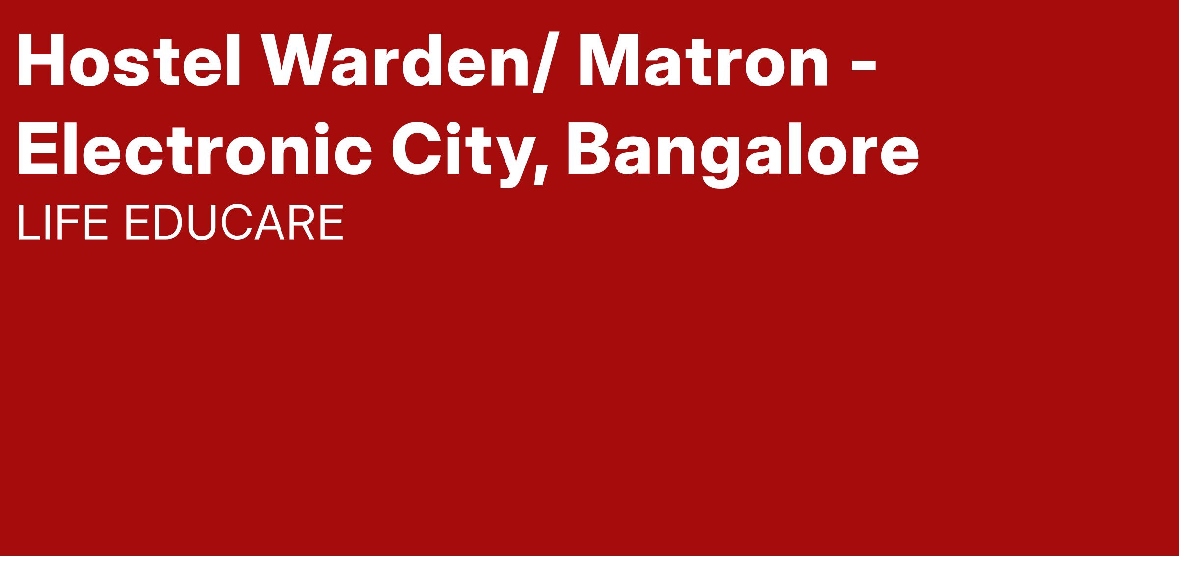 Urgent Hiring for Female Hostel Warden for Premium School, Bangalore