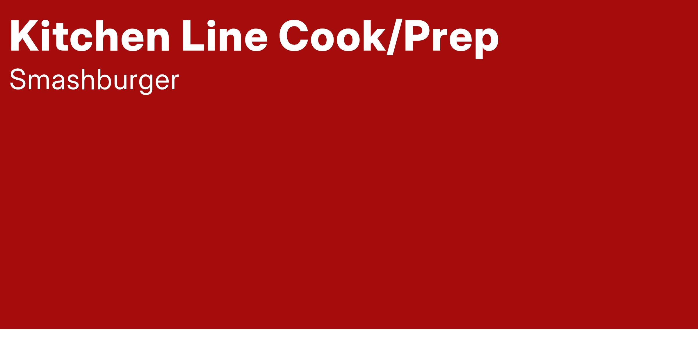 Smashburger in Springfield, PA is currently searching for enthusiastic and energetic people to join our team as a full-time Kitchen Line Cook / Prep. Are you looking to work with a fun group of people? Do you want a job that you can look forward to coming to each day? Do you want to do something in the food service industry that people will really appreciate? Do you have a great smile, a positive attitude, and a passion for teamwork? If so, read on!