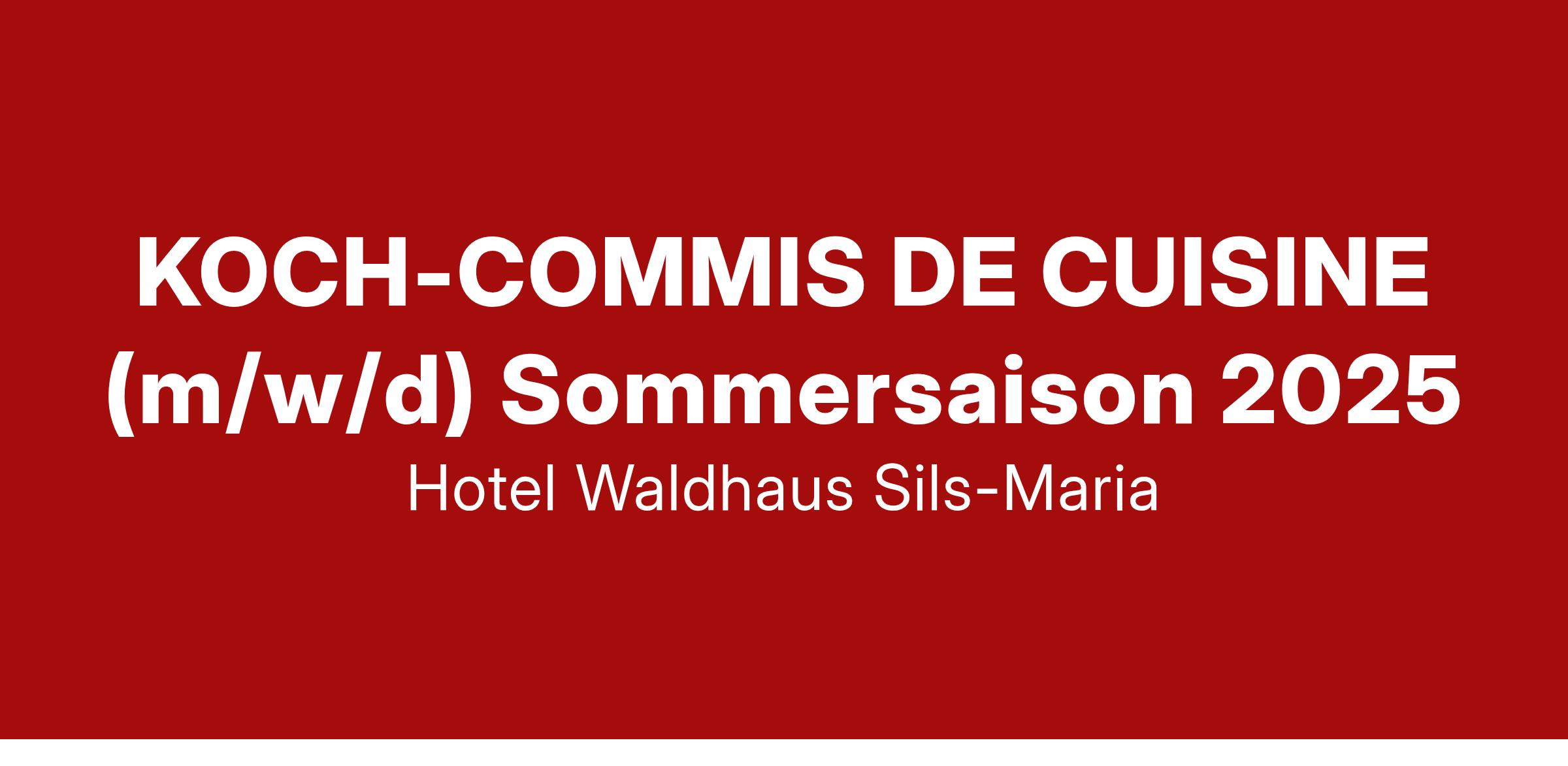 Zur Verstärkung unseres Waldhaus-Teams suchen wir für die Sommersaison 2025 Juni bis Oktober einen motivierten Koch - Commis de cuisine in Saisonanstellung mit der Möglichkeit zur Verlängerung auf die nachfolgende Saison.