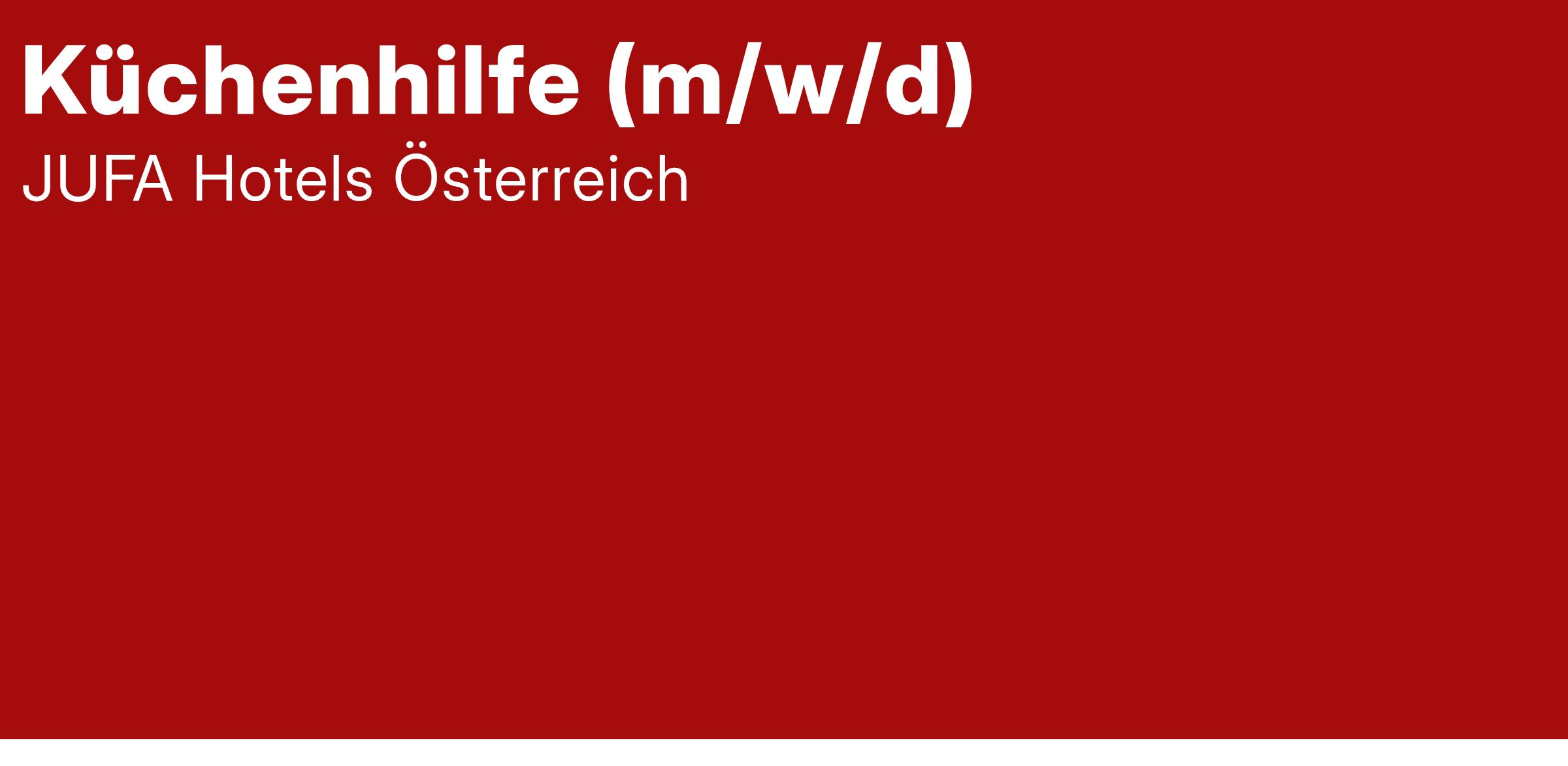 Du suchst einen abwechslungsreichen Job in der Küche und hast Freude daran, unsere Gäste kulinarisch zu verwöhnen? Dann bist du bei den JUFA Hotels genau richtig! Wir suchen engagierte Küchenhilfen (m/w/d) zur Verstärkung unseres Küchenteams.