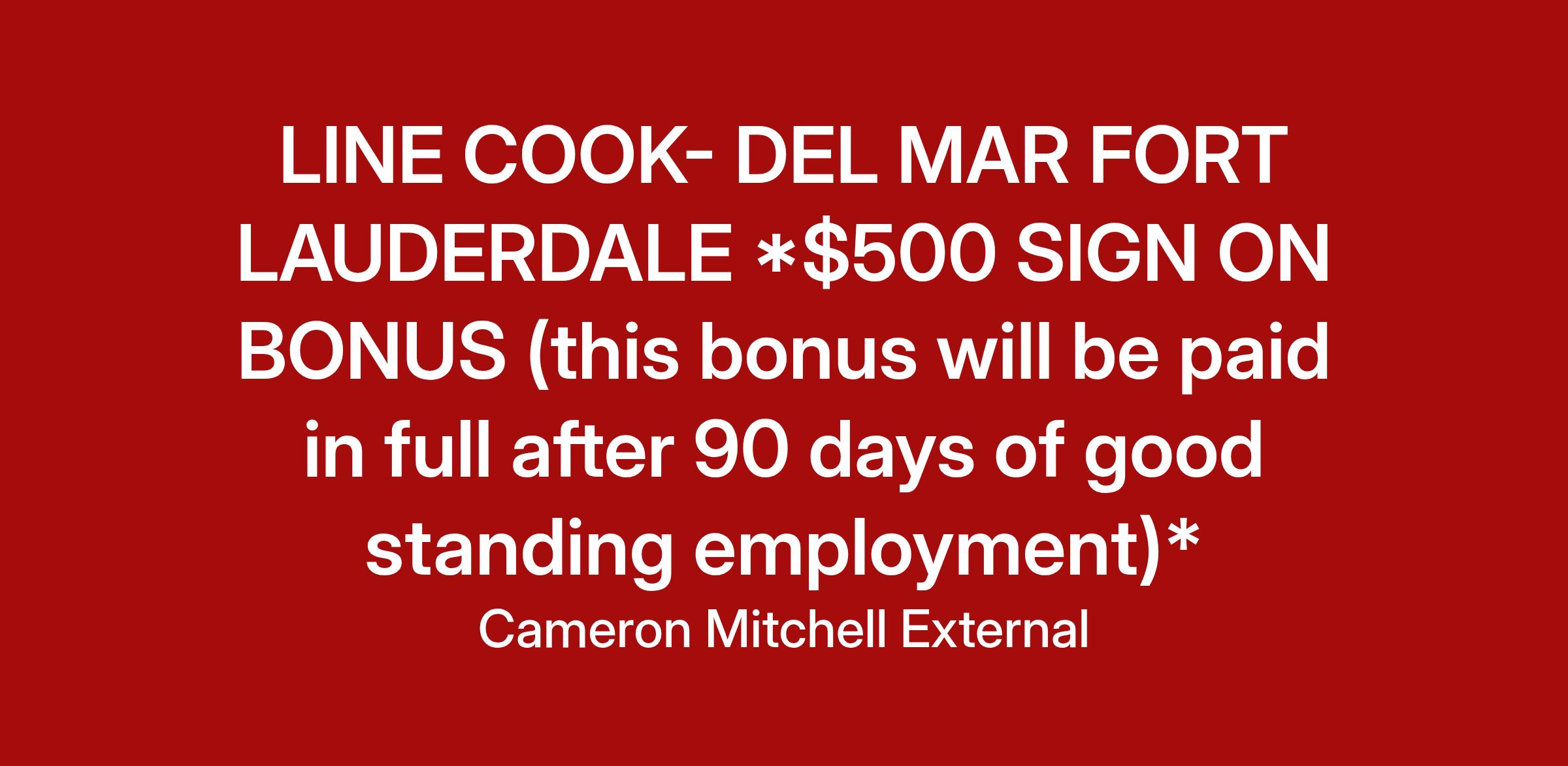 CAMERON MITCHELL RESTAURANTS is seeking a LINE COOK to join our opening team!