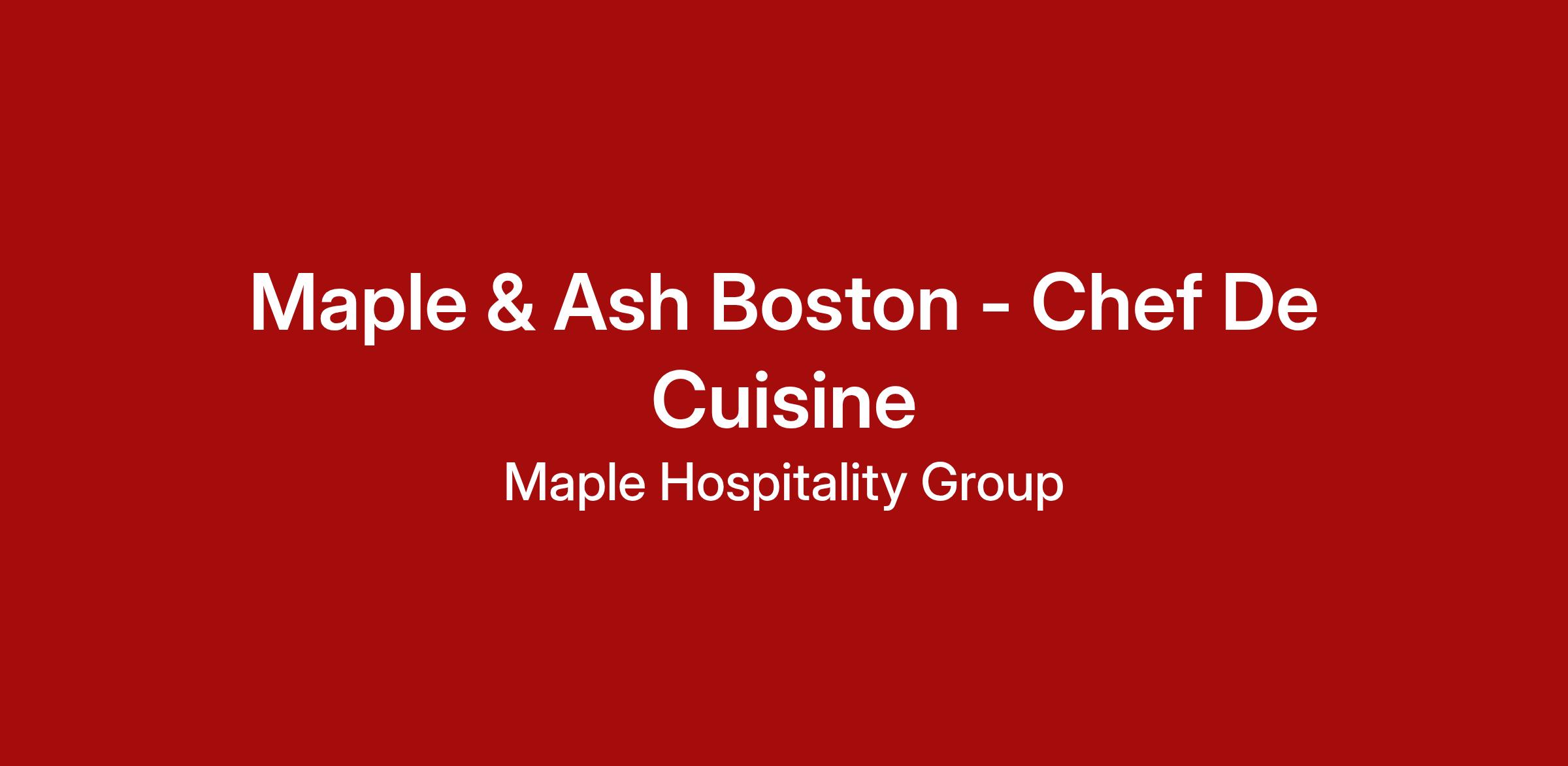 Join Maple Hospitality Group, where culinary excellence meets unparalleled service. Led by renowned restaurateur Jim Lasky and two-Michelin-starred Chef Danny Grant, known for his innovative approach to fine dining, we're building a team of passionate food lovers dedicated to creating iconic destinations.