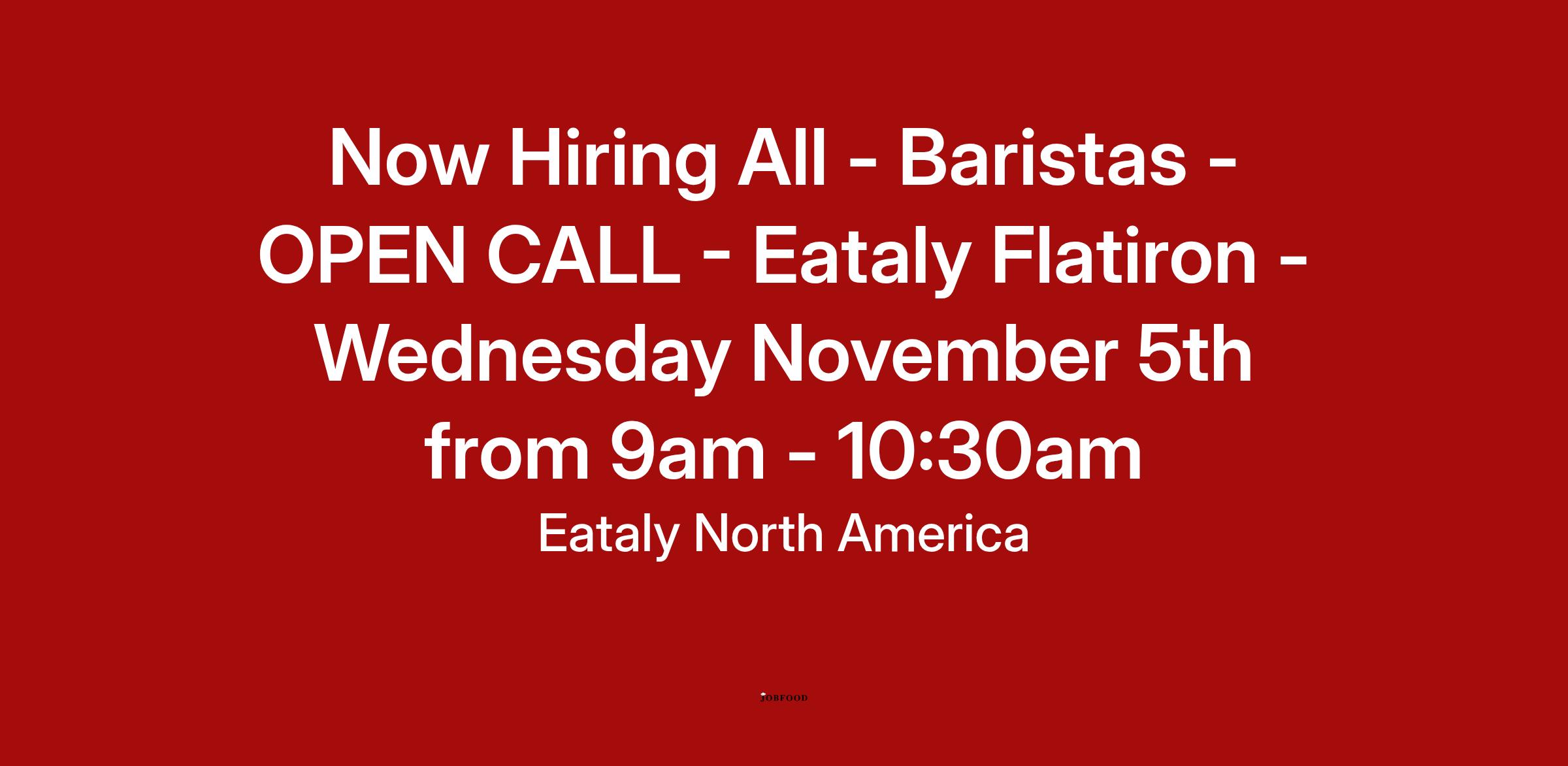 We will be hosting an Open Call on Eataly Flatiron - Wednesday November 5th from 9am - 10:30am , and we would love to see you there! For this power hour, we are hiring for the following positions: