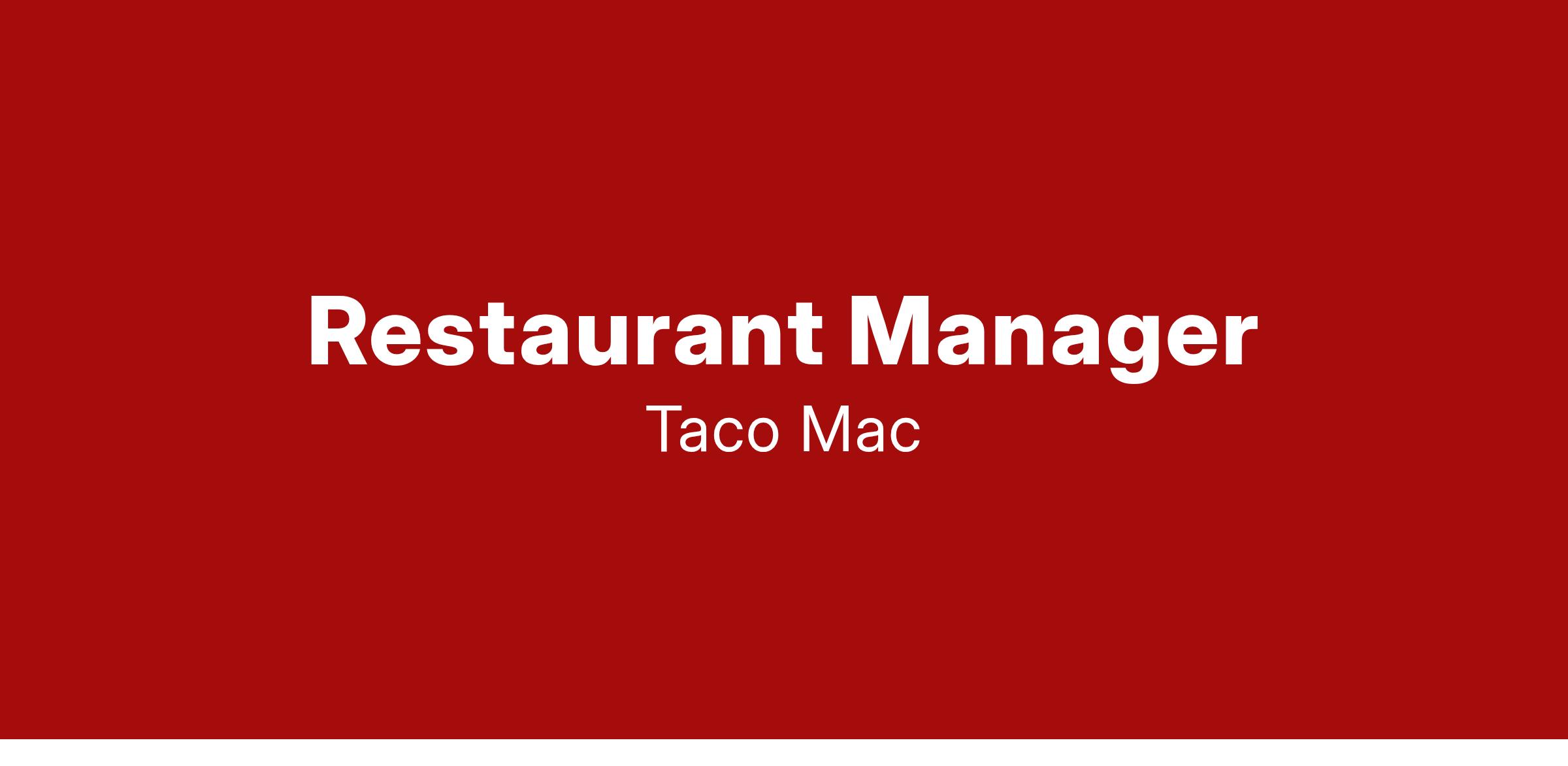 Taco Mac is seeking Managers at all levels (Hospitality, Kitchen, Assistant General Manager and General Manager) to provide operational excellence in our restaurants. Our Managers are empowered to provide leadership and guidance in all areas of operations, including but not limited to, profit management, sales and Guest count growth, Guest experience, and Team Member development.