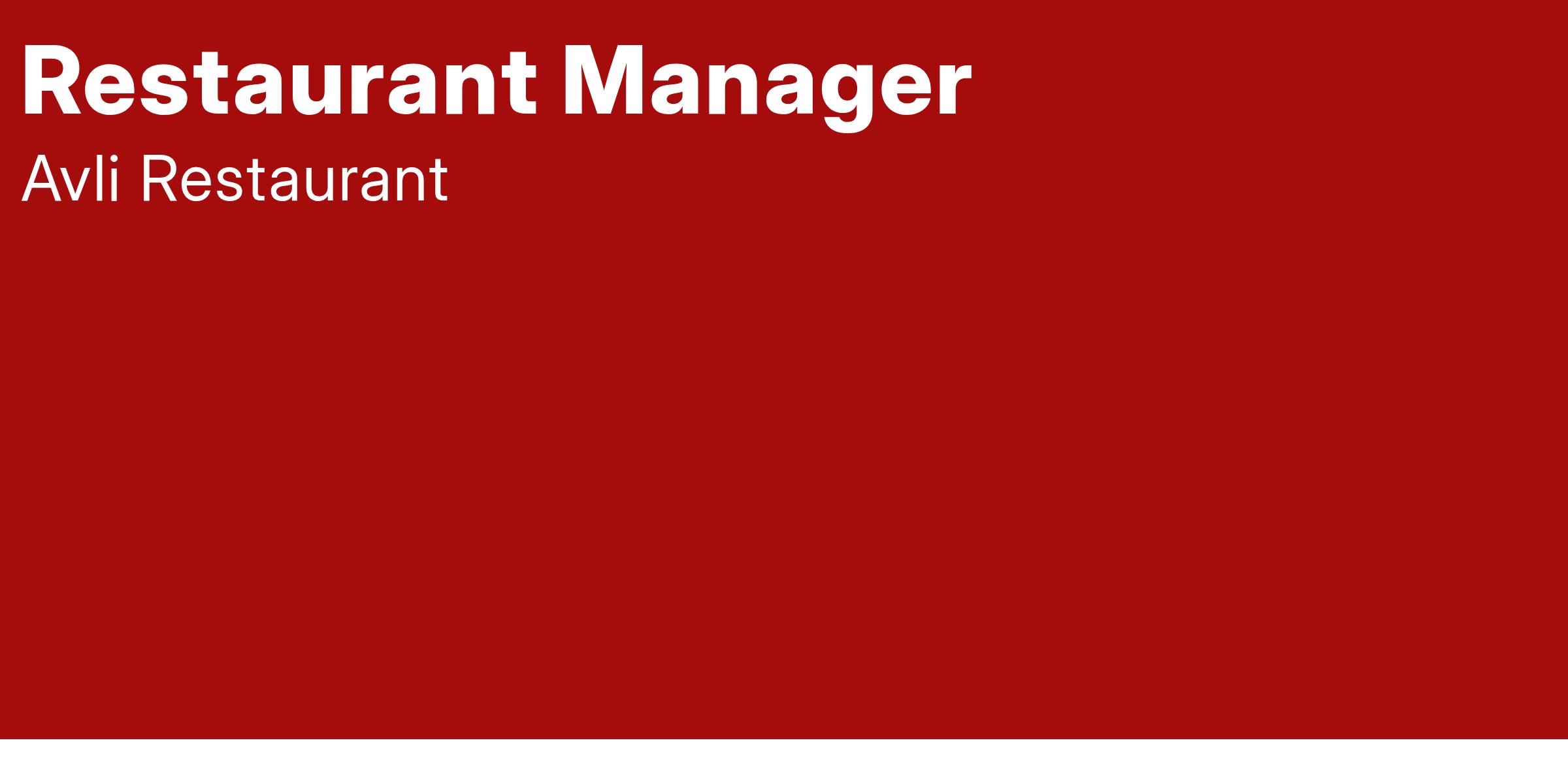 Avli is looking for a Restaurant Manager for our Lakeshore East location!