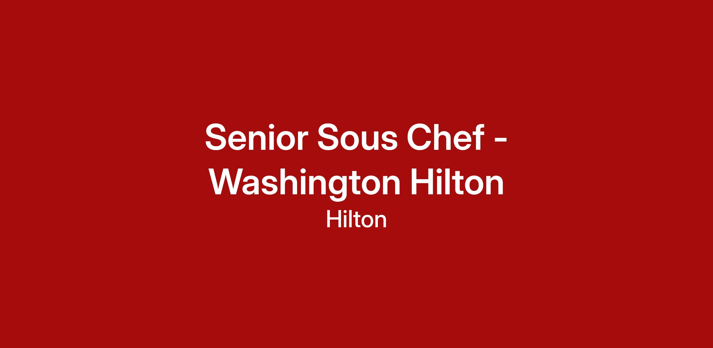 The historic Washington Hilton is seeking a full-time Senior Sous Chef to join their culinary leadership team! This 1107-room property is within blocks of Dupont Circle and Adams Morgan, with The White House and National Mall less than two miles away!