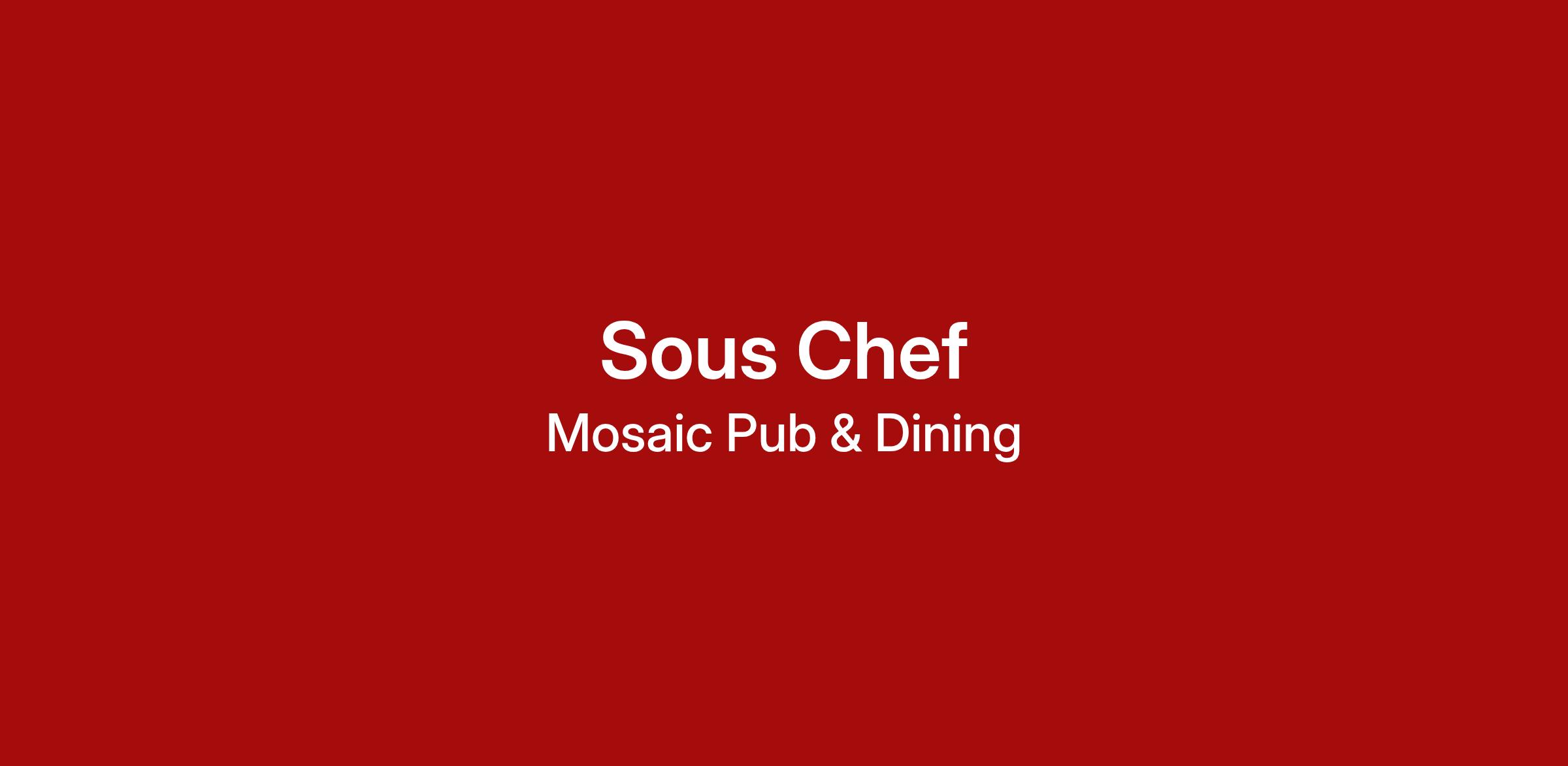 We’re looking for a motivated and professional Sous Chef to play a key role in the day-to-day success of our kitchen.