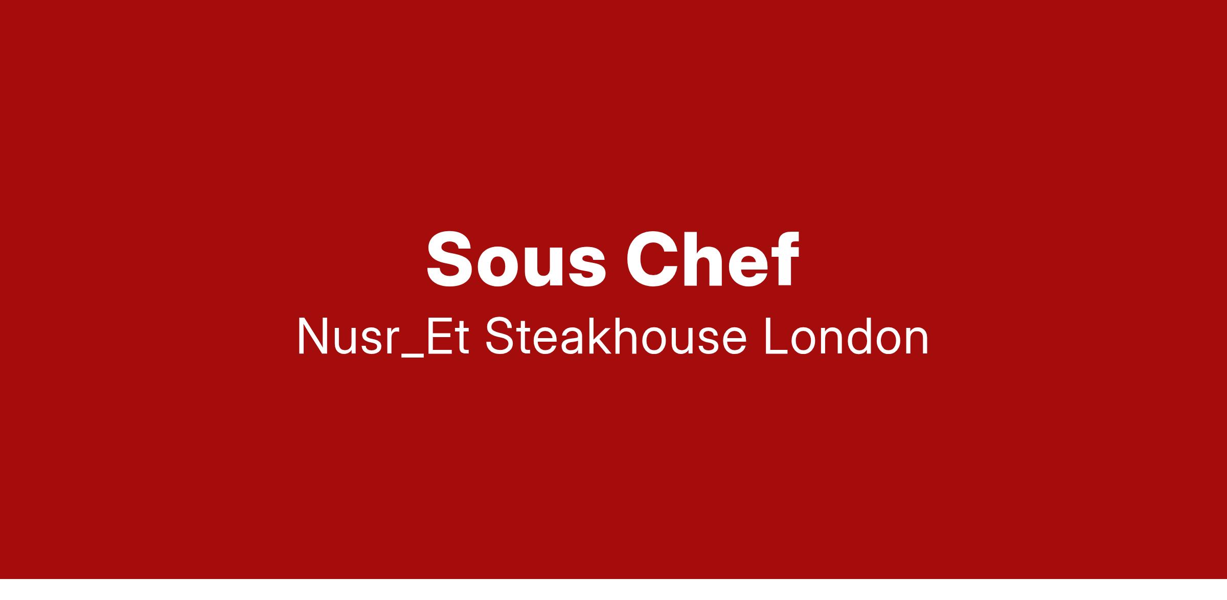 We have an exciting opportunity for a motivated Sous Chef to join our passionate team at the prestigious Nusr-Et Steakhouse in London.