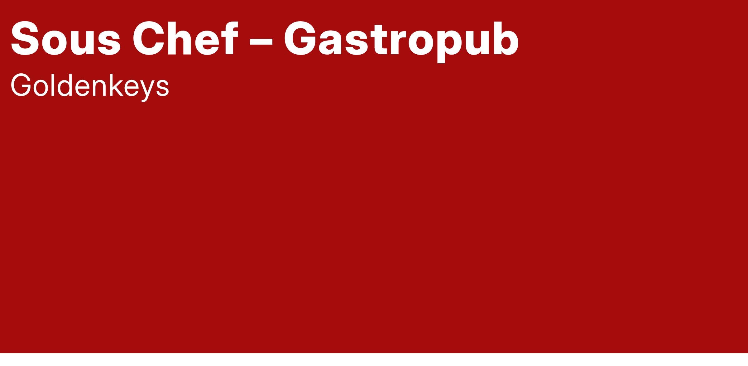 If you're a passionate Sous Chef looking to make your mark in a quality-driven kitchen, we'd love to hear from you!
