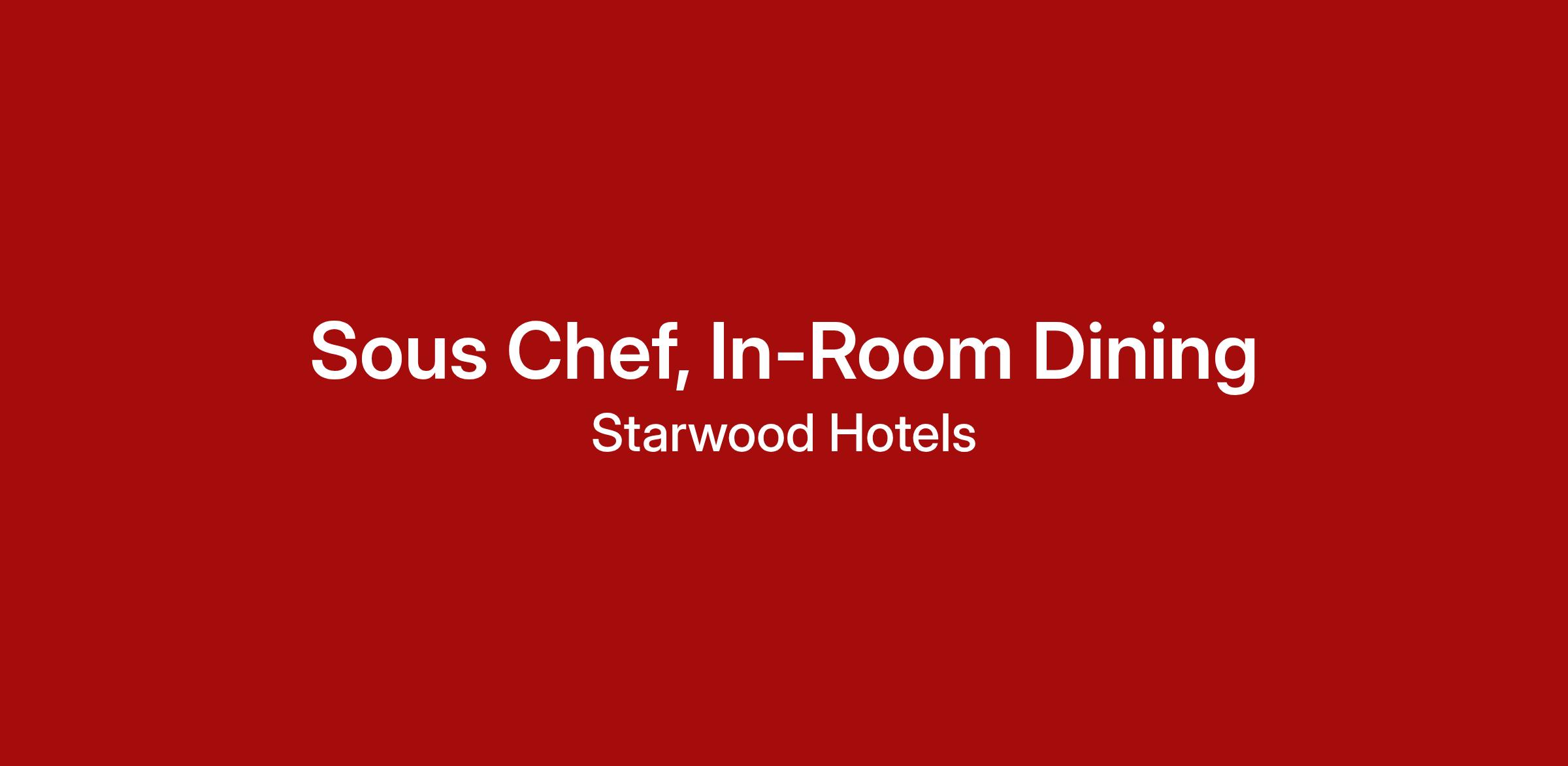 Starwood Hotels is an Equal Opportunity Employer. We believe in a diverse, sustainable workforce with an empowered, inclusive culture. We are committed to non-discrimination on any protected basis covered under applicable law. If you require any special accommodations, please visit People Operations.