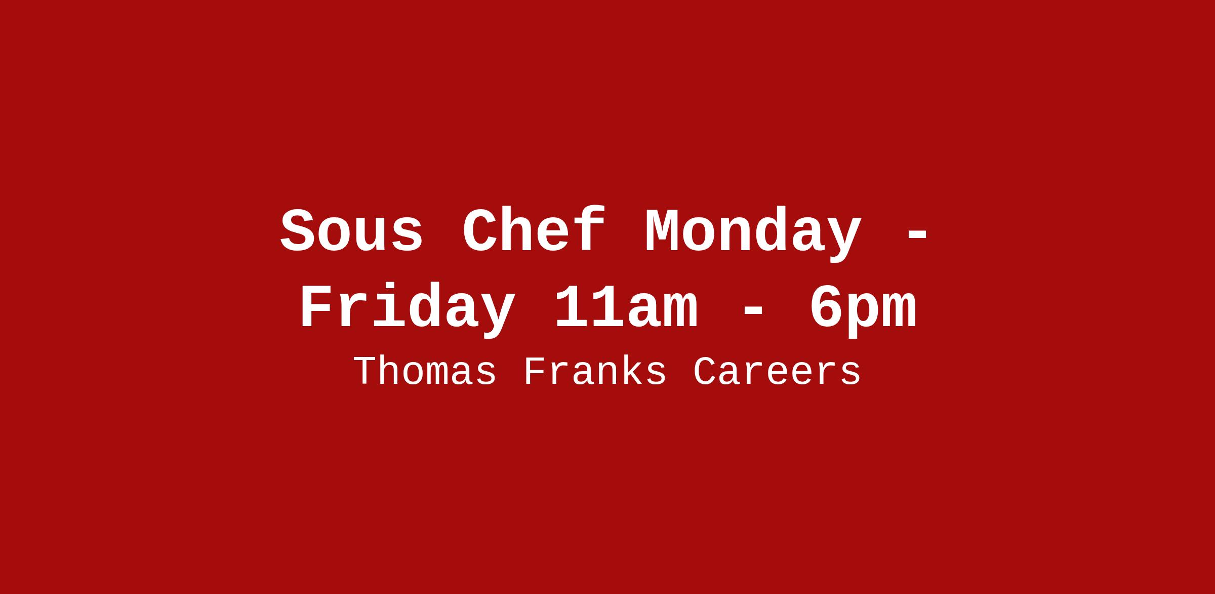 Sous Chef Monday - Friday 11am - 6pm
