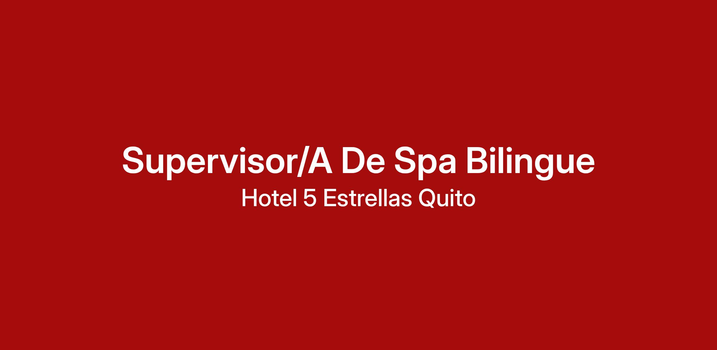 En nuestro exclusivo spa ubicado en Quito, estamos en la búsqueda de un Supervisor/a de Spa Bilingüe para unirse a nuestro equipo. Buscamos a una persona apasionada por brindar un servicio excepcional a nuestros clientes, que sea bilingüe y tenga experiencia previa en supervisión en el sector de spa y bienestar.
