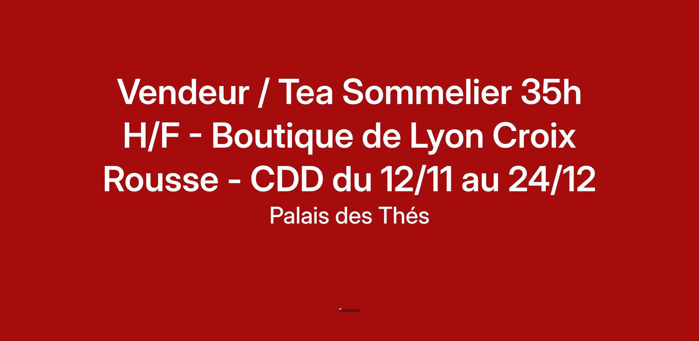 Vendeur / Tea Sommelier 35h H/F - Boutique de Lyon Croix Rousse - CDD du 12/11 au 24/12