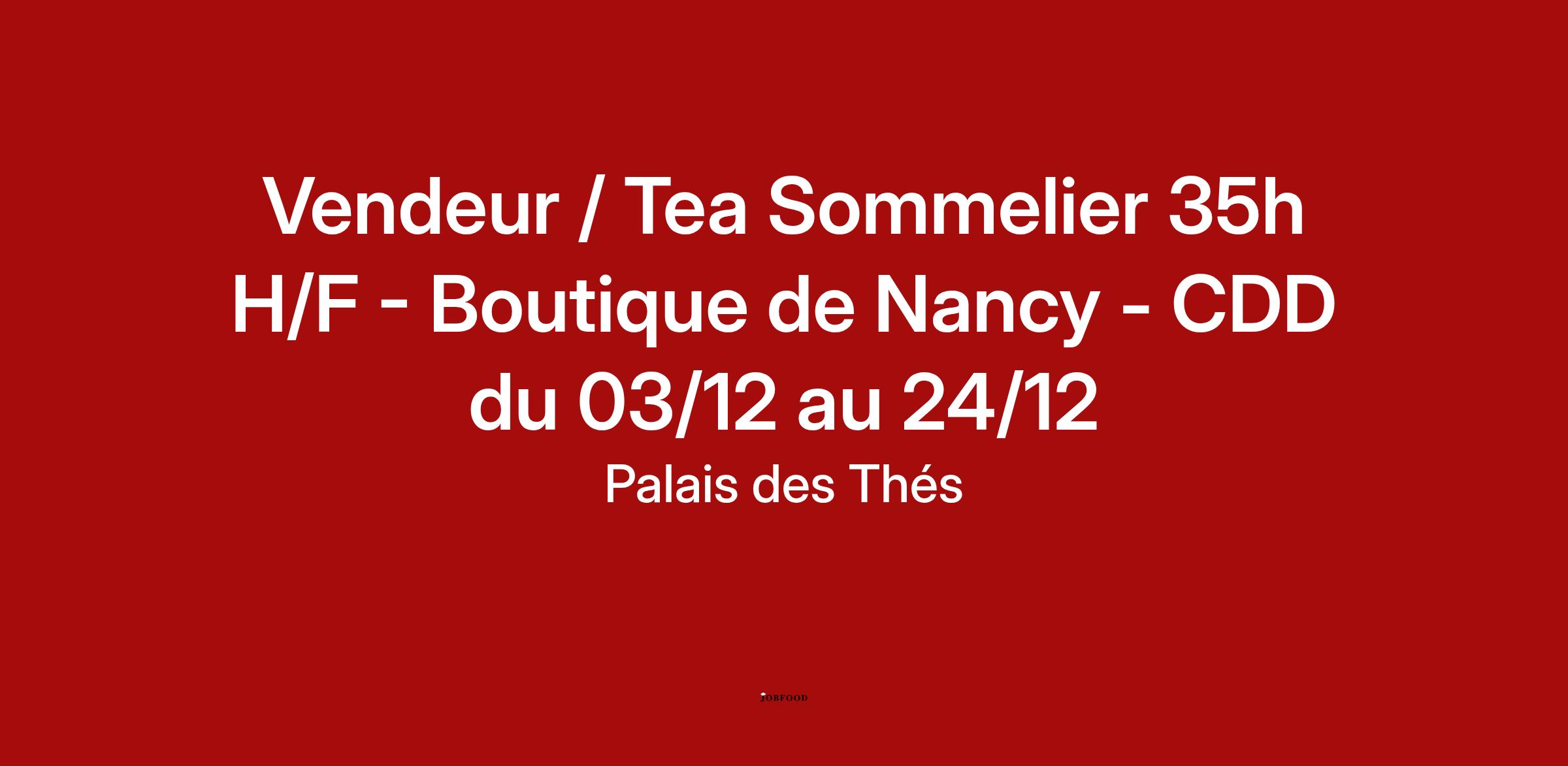 Vendeur / Tea Sommelier 35h H/F - Boutique de Nancy - CDD du 03/12 au 24/12