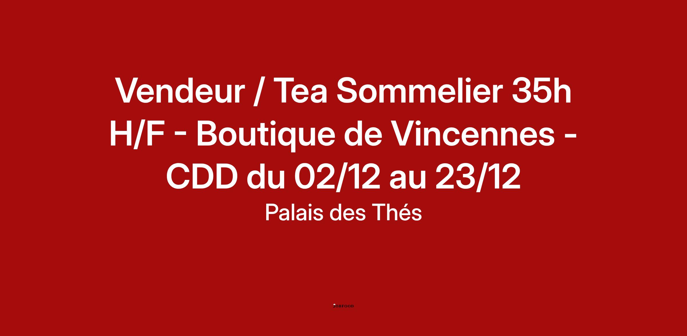 Vendeur / Tea Sommelier 35h H/F - Boutique de Vincennes - CDD du 02/12 au 23/12
