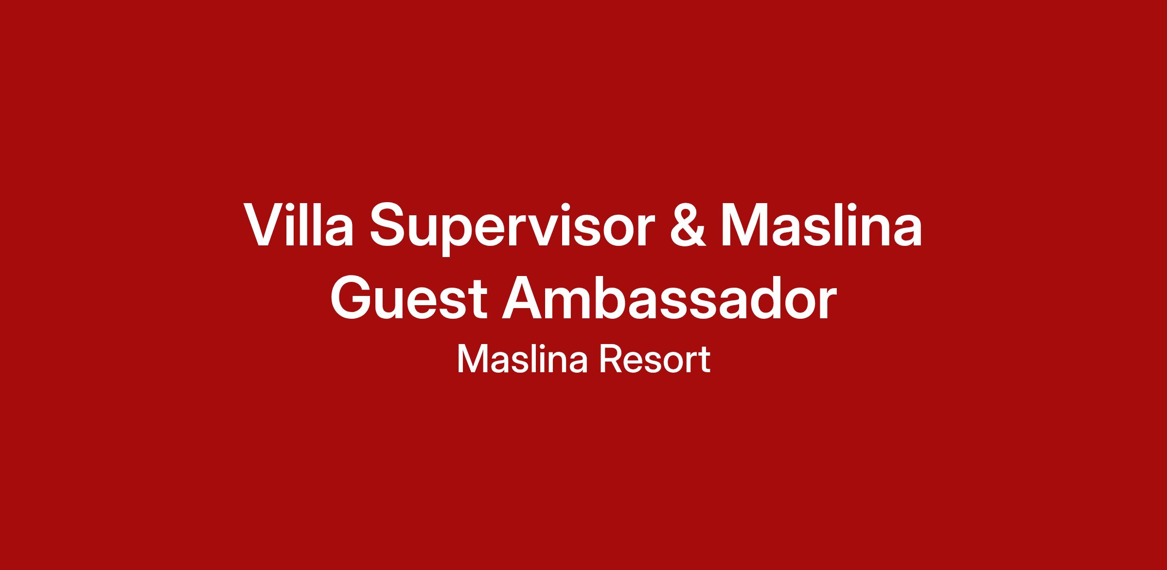 We are seeking a Villa Supervisor & Maslina Guest Ambassador—a vital role that ensures our most exclusive accommodations operate at the highest standard.